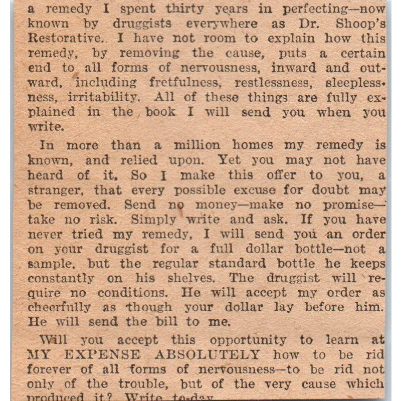 This is a SMALL ad, measuring approx 2x2.5". Original piece pulled from Feb 18, 1905 New England Homestead Magazine. There may be some light staining, tears, and/or other signs of wear and tear. See pics for condition.