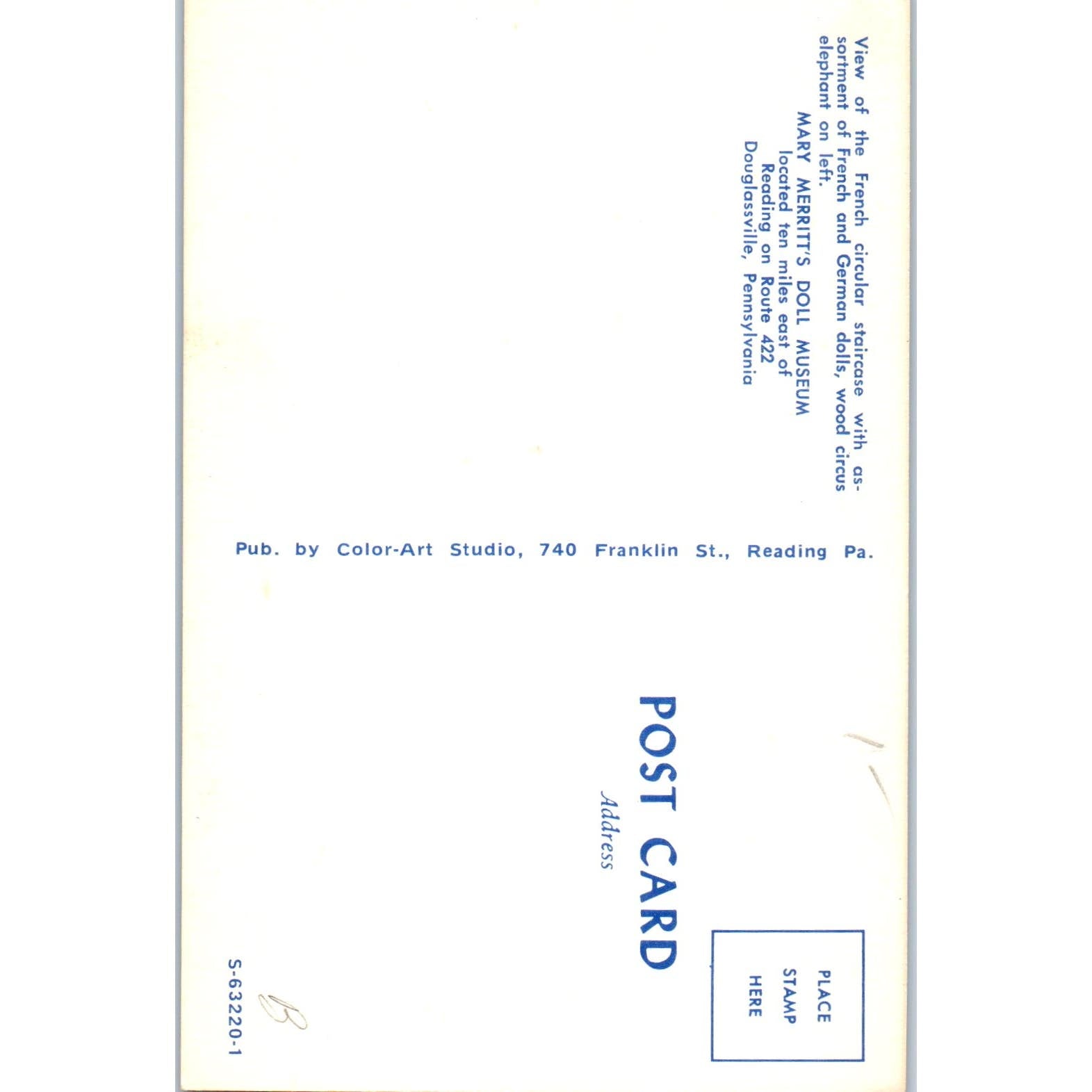 Mary Merritt's Doll Museum French Circular Staircase Original Postcard PB4
