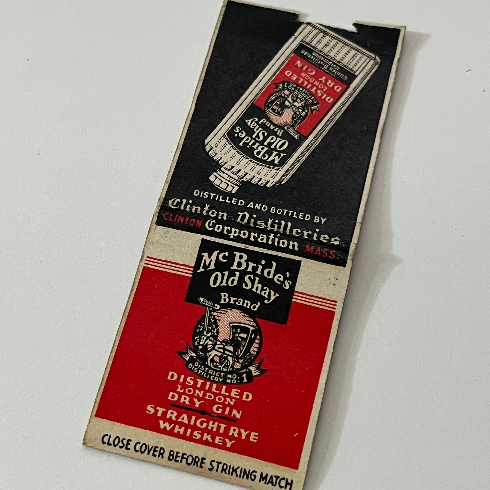 McBride's Old Shay Brand Dry Gin Straight Whiskey Matchbook Cover TB6-MB1-12