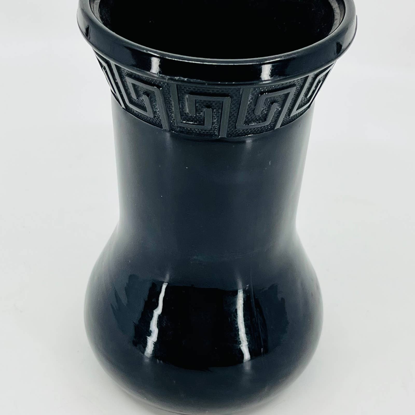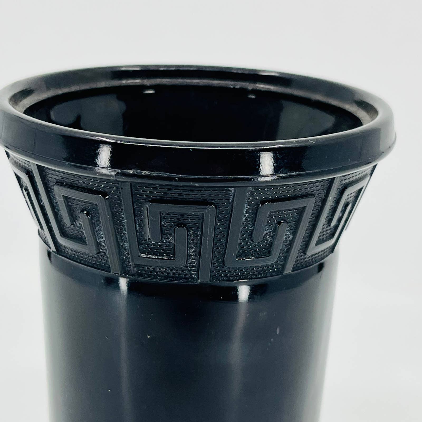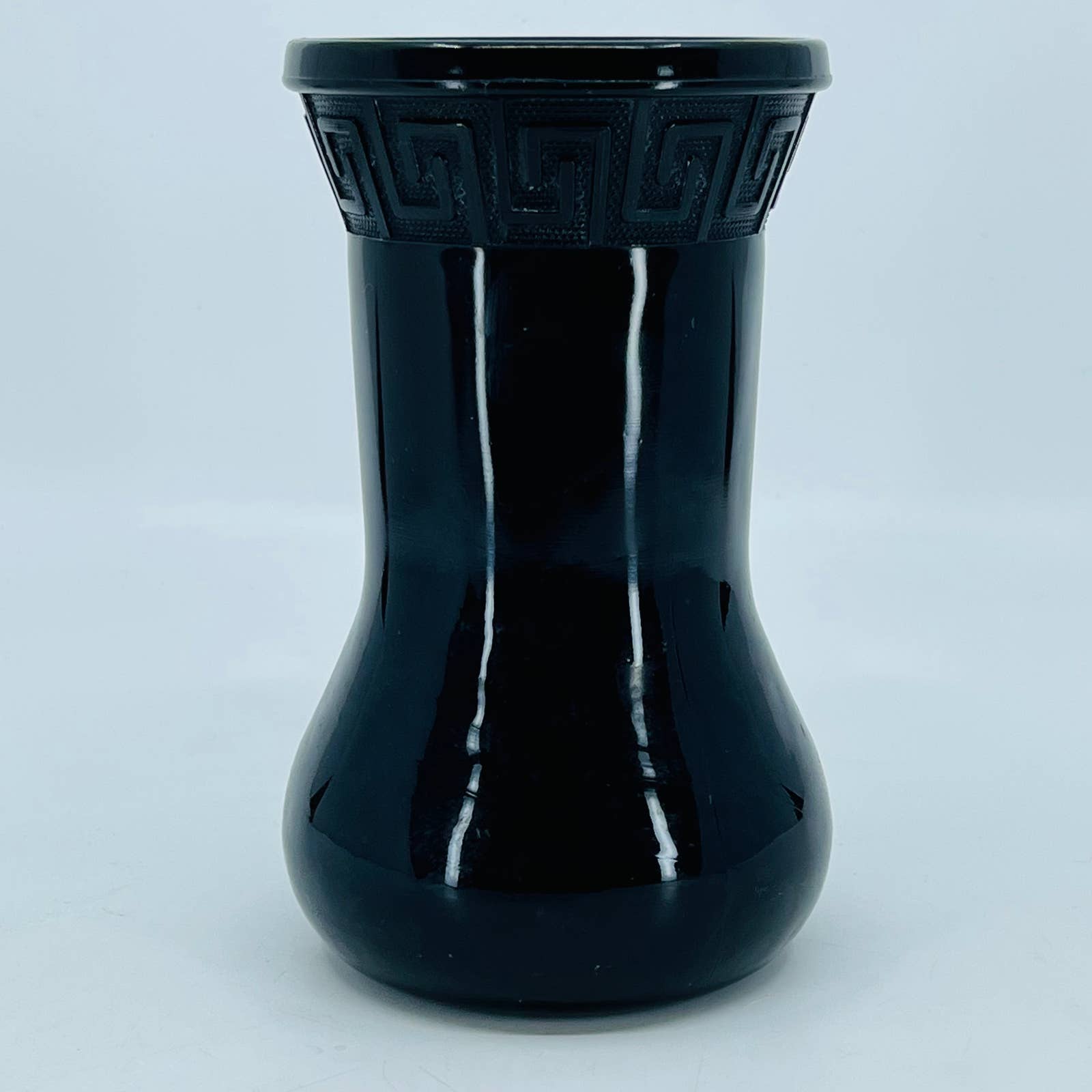 MCM Mod LE Smith Black Amethyst Glass 710 Vase w/ Greek Key Pattern 6” TC7
