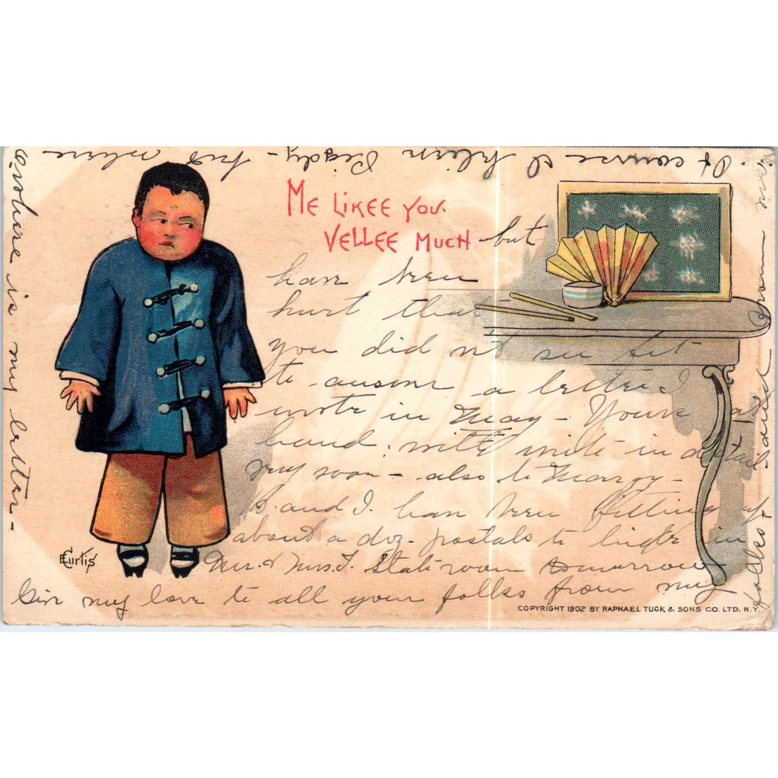 Me Likee You Vellee Much - E. Curtis Raphael Tuck Original Postcard TK1-P14