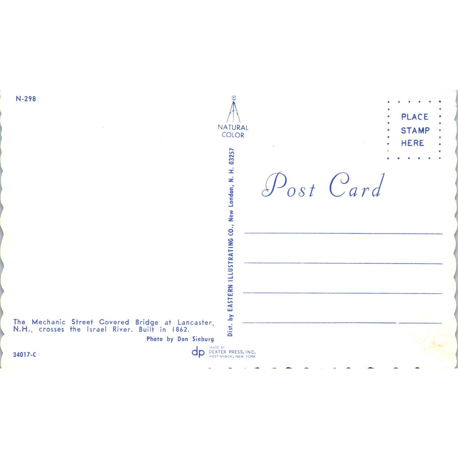Mechanic Street Bridge Lancaster NH Vintage Covered Bridge Postcard PC15