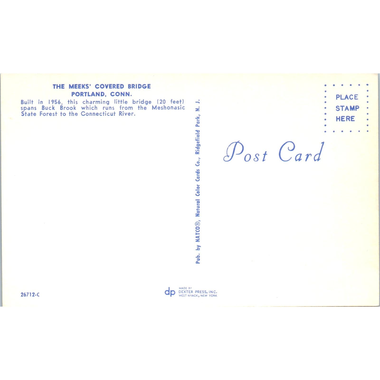 Meeks' Bridge Portland Connecticut Covered Bridge Postcard PB13