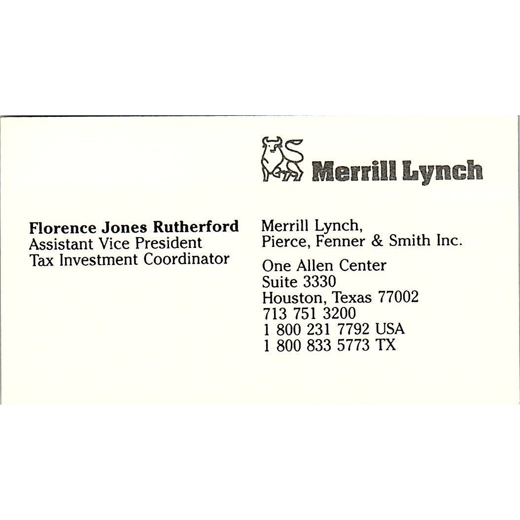 Merrill Lynch Florence Jones Rutherford Johnson Houston TX Business Card SB4-B1