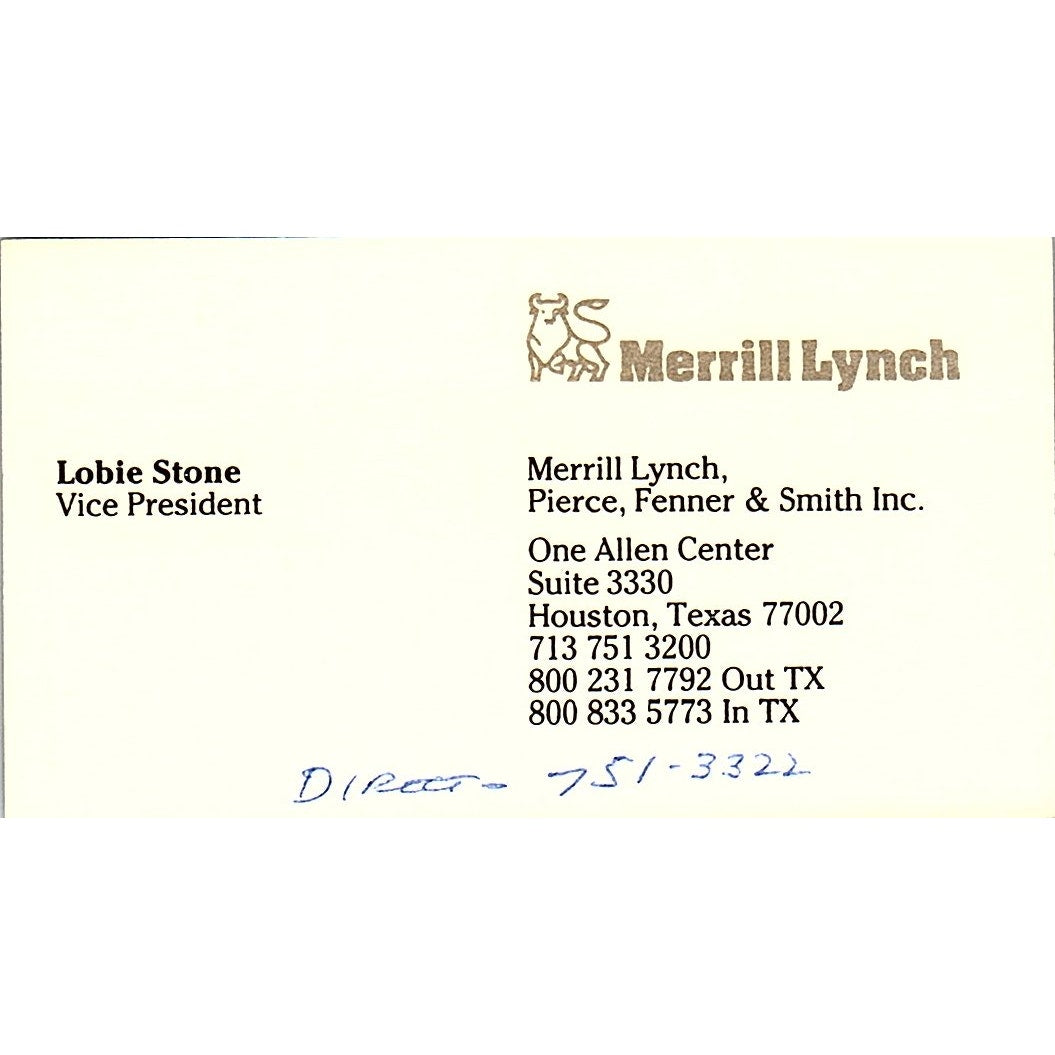 Merrill Lynch Lobie Stone Houston Texas Vintage Business Card SB4-B1