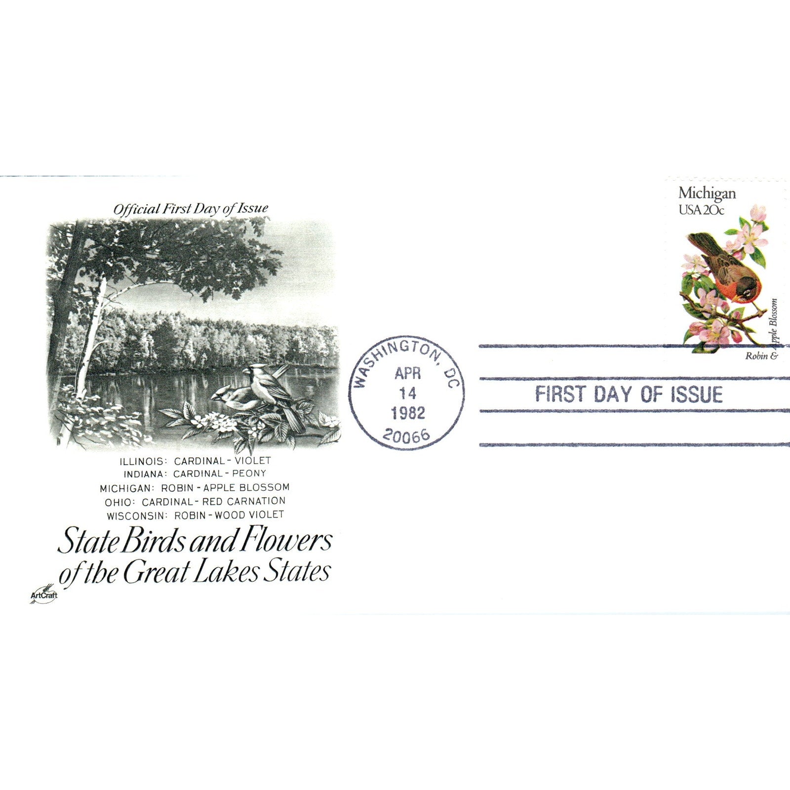 Michigan 1982 State Birds & Flowers Great Lakes States First Day Issue TJ5-PC3