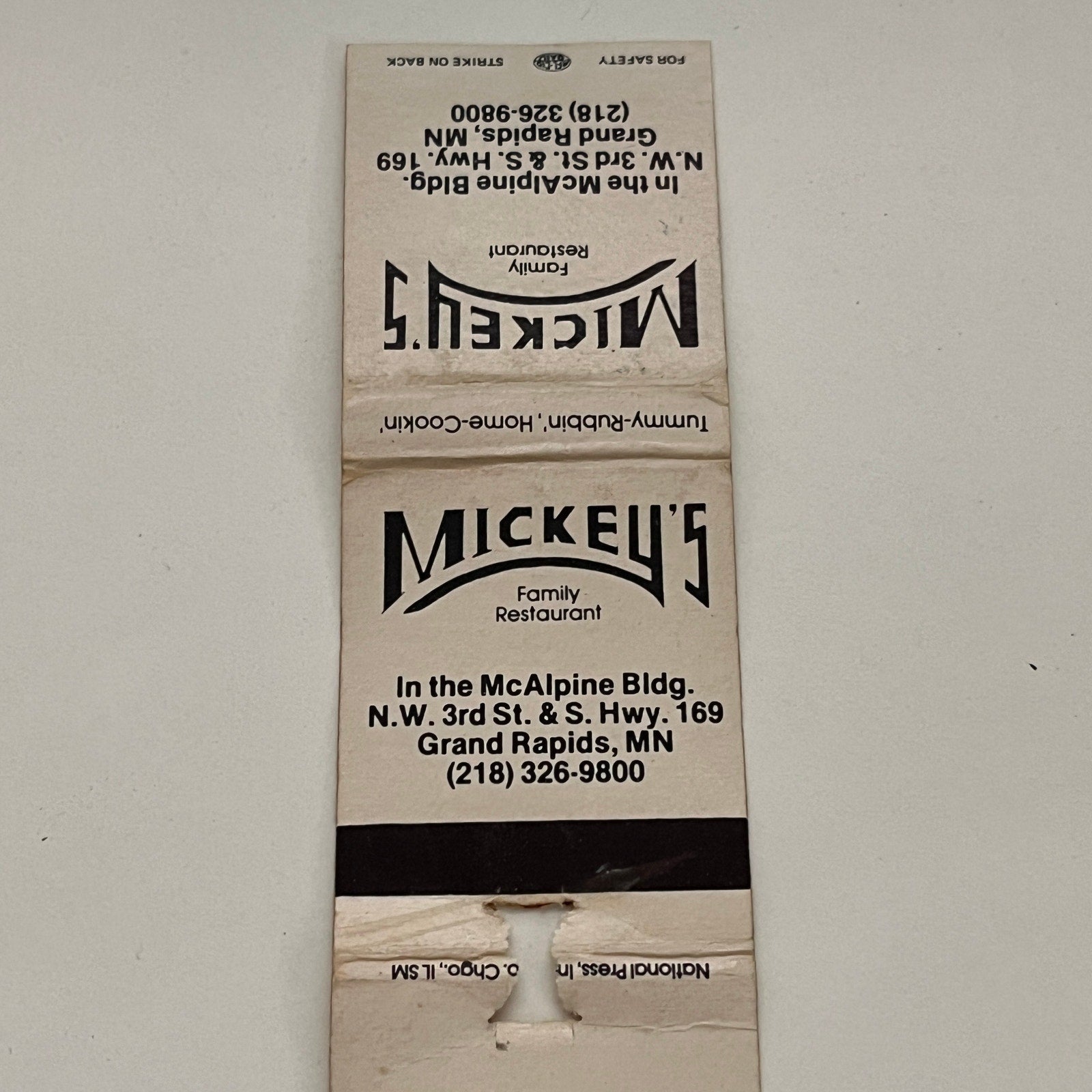 Mickey's Family Restaurant Grand Rapids MN Vintage Matchbook TB6-MB2-14