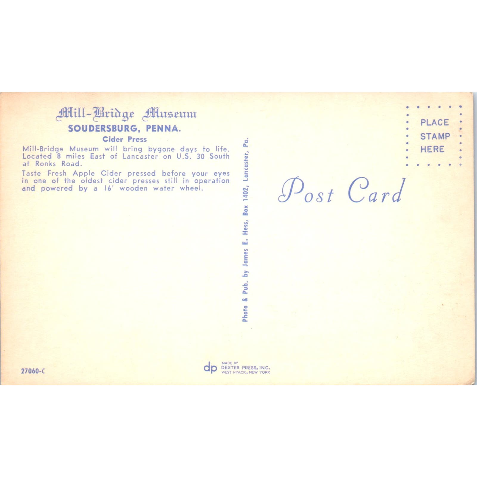 Mill-Bridge Museum Soudersburg Cider Press Pennsylvania Dutch Country Postcard PD7