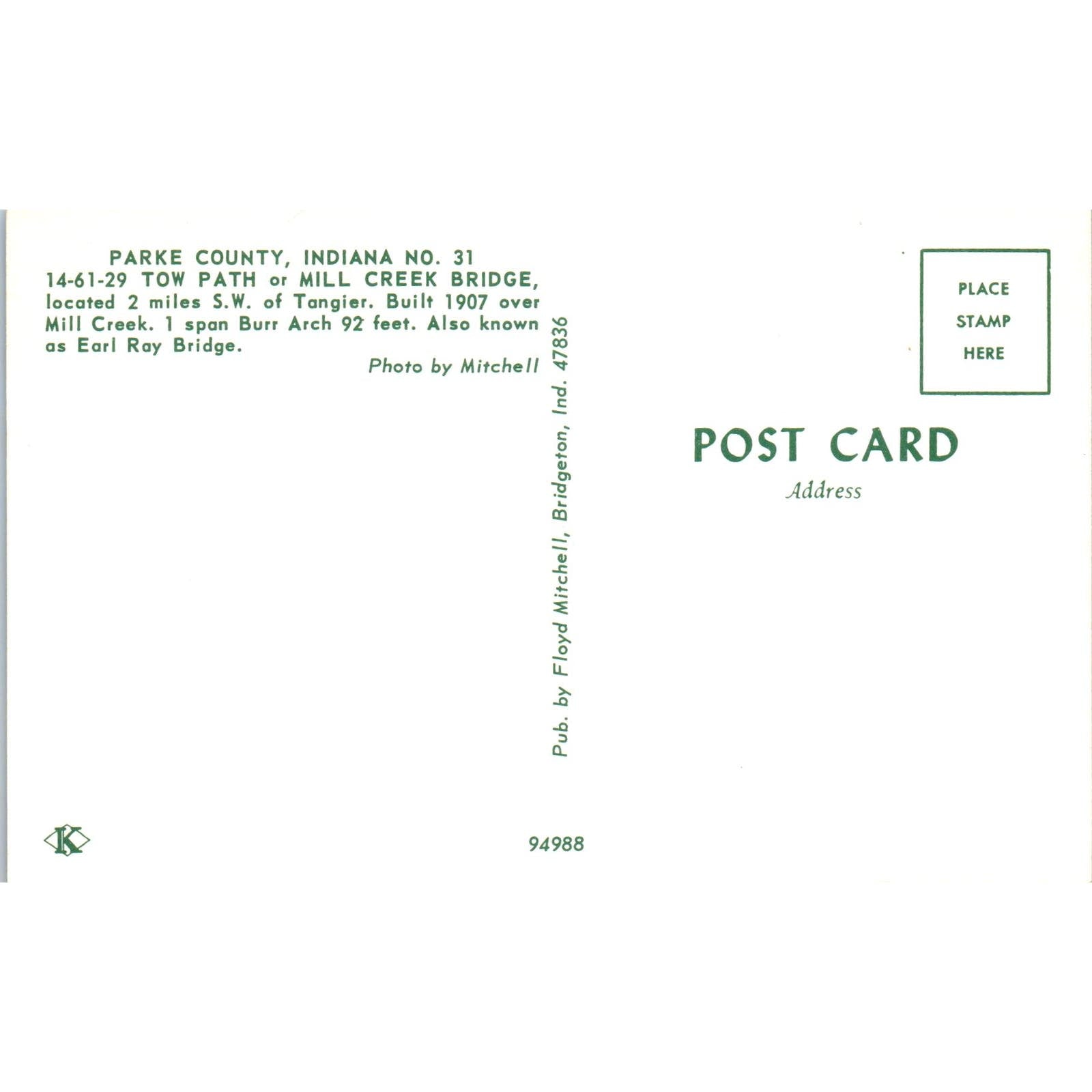 Mill Creek Tow Path Bridge Tangier IN Vintage Covered Bridge Postcard PD5