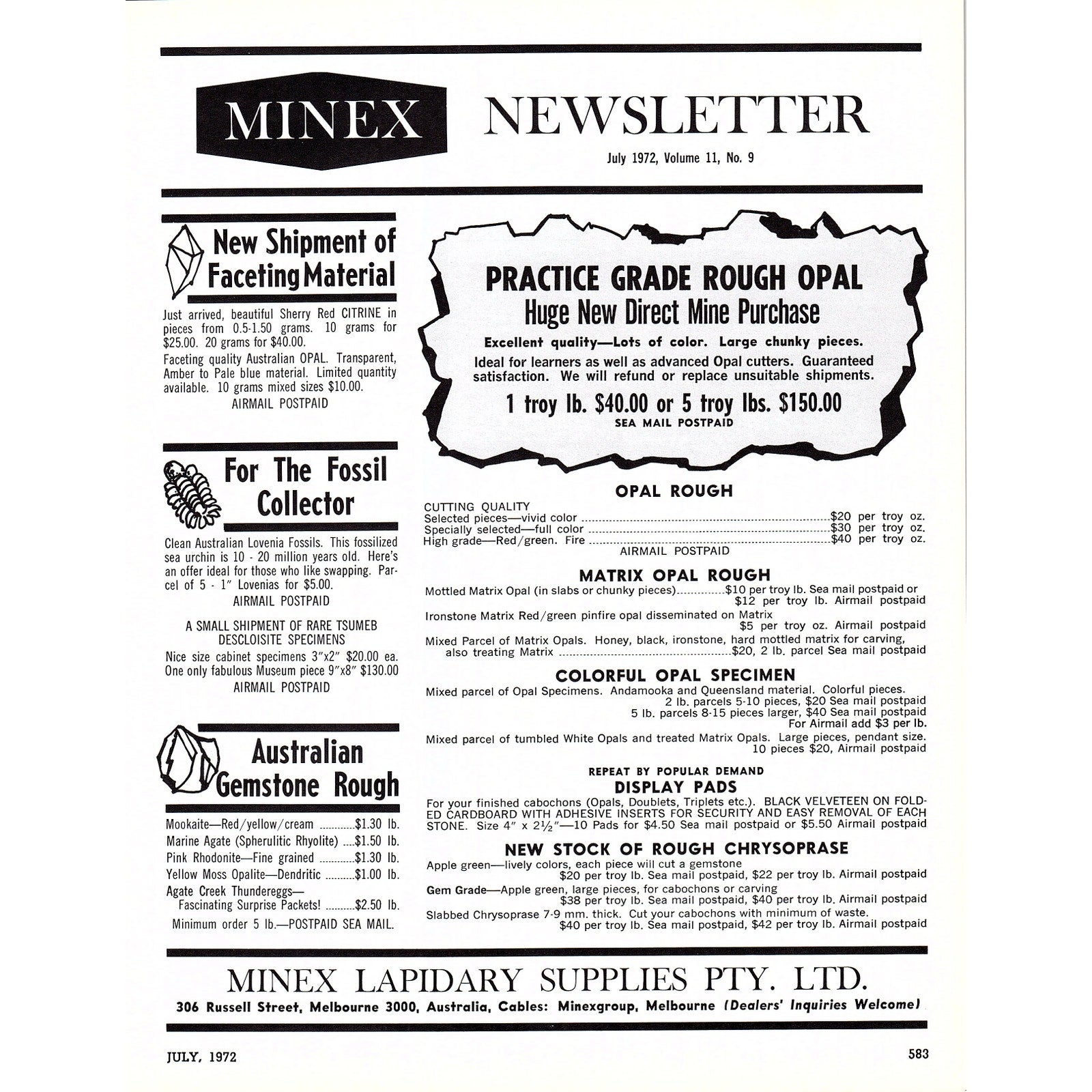 Minex Lapidary Supplies Newsletter Vol 11 No 9 Melbourne Australia 1972 Ad AF8-3