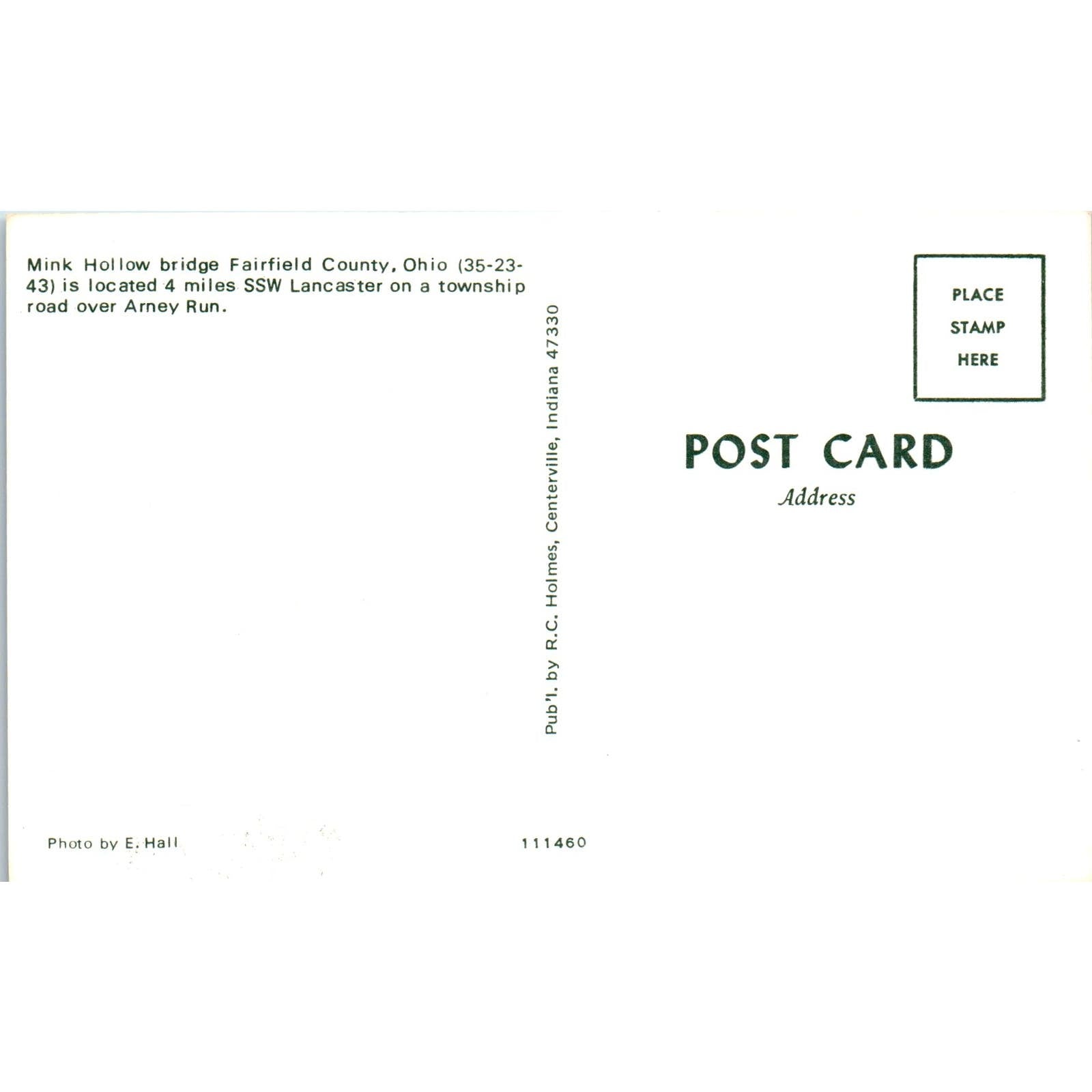 Mink Hollow Bridge Fairfield County Arney Run Ohio Covered Bridge Postcard PC2
