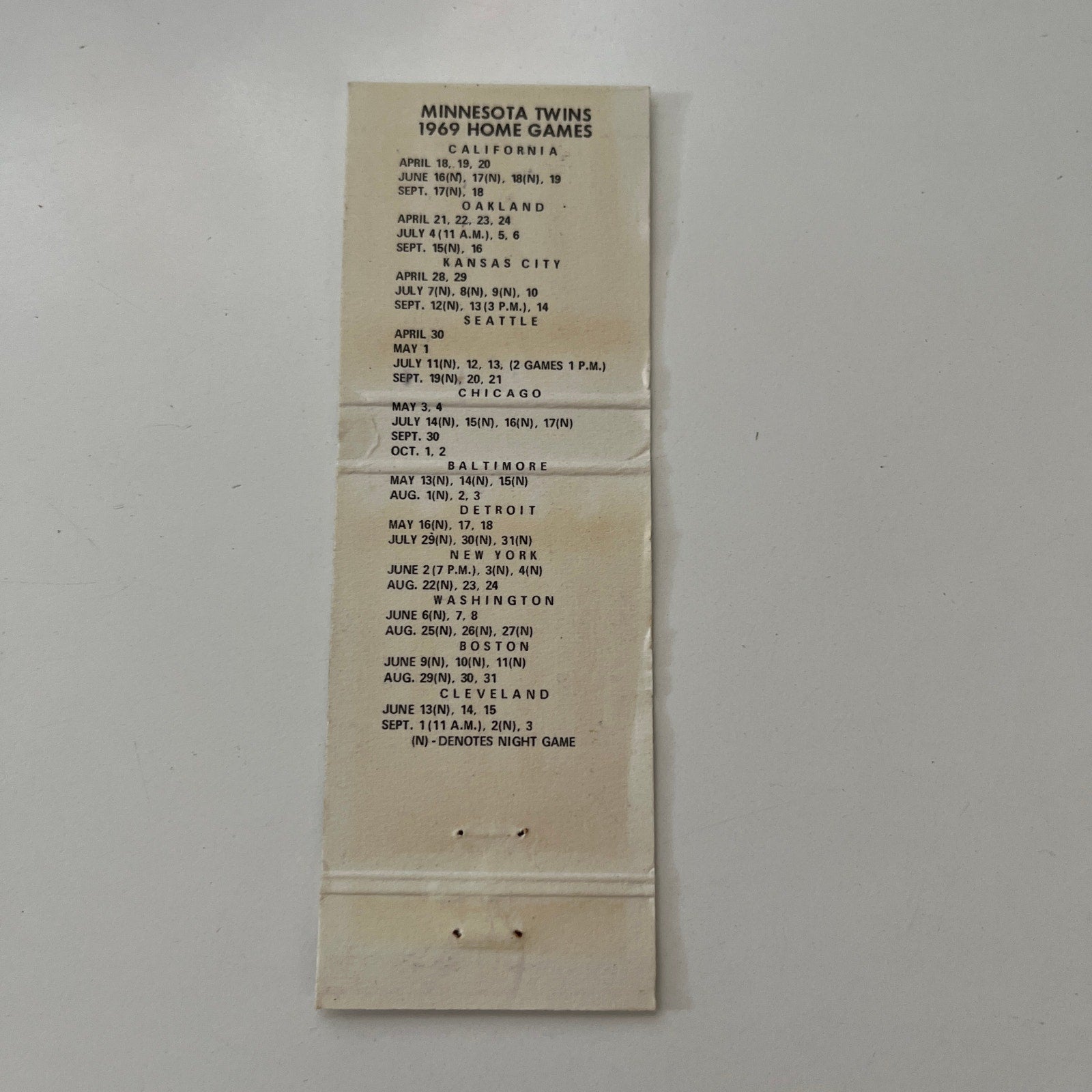 Minnesota Twins Baseball Schedule 1969 MN Vintage Matchbook Cover MB44-4