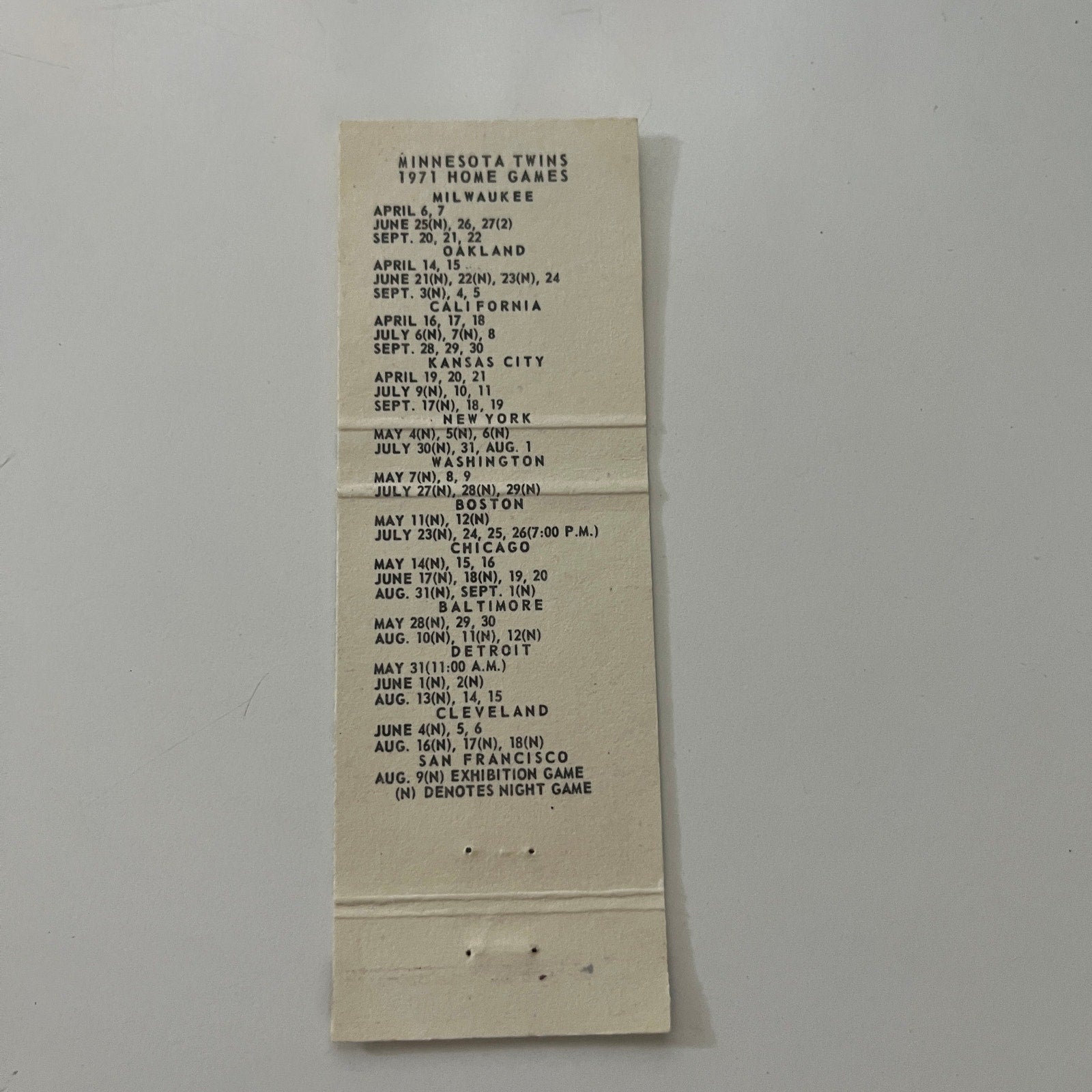 Minnesota Twins Baseball Schedule 1971 MN Vintage Matchbook Cover MB37-2