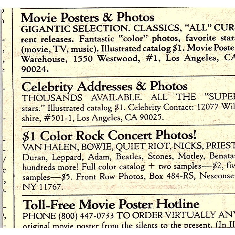 Measures approx 2x2.5". Size is approximate. Original piece taken from a 1984 Rolling Stone magazine. Has regular wear and tear you would expect from a piece this age. See pics for condition.
