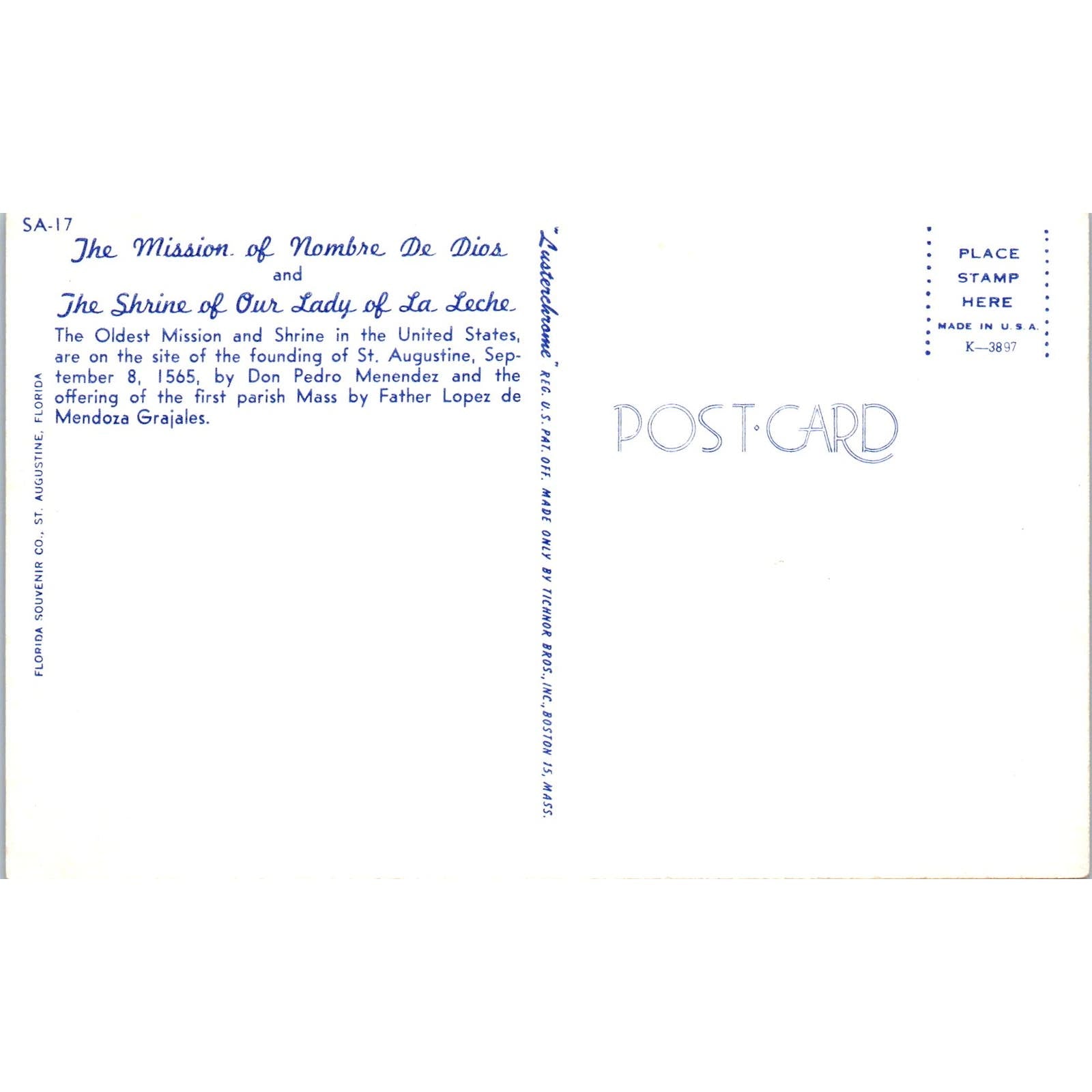 Mission Nombre De Dios & Shrine of Our Lady of La Leche St. Augustine FL Vintage Postcard PD1