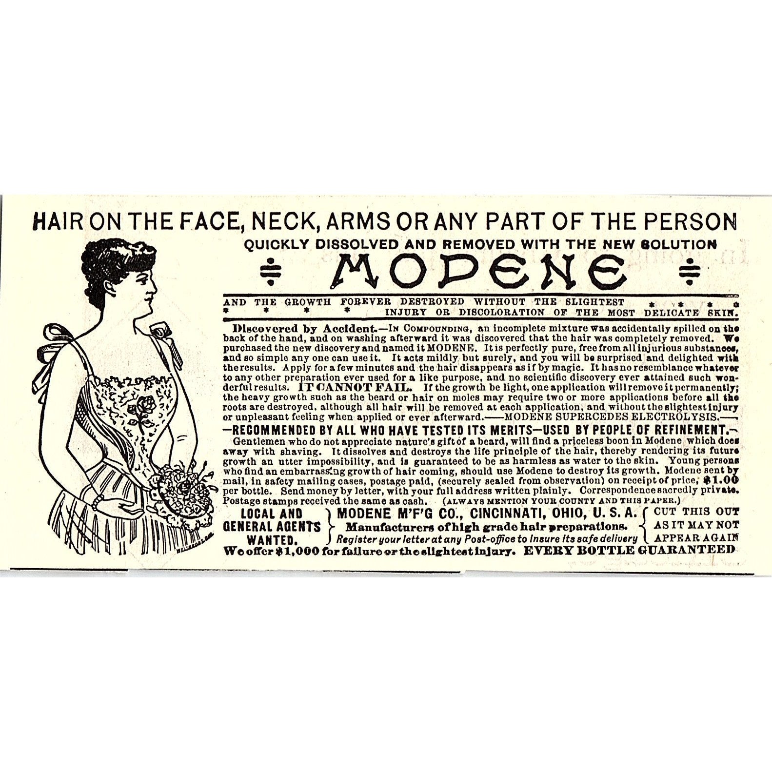 Modene Hair Removal Modene Mfg Co Cincinnati 1892 Ad AG2-M20