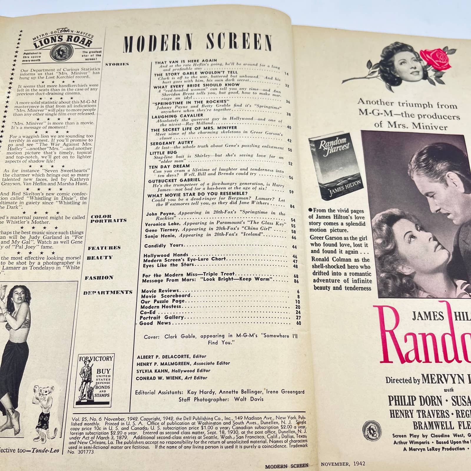 Modern Screen Magazine November 1942 Clark Gable TC6
