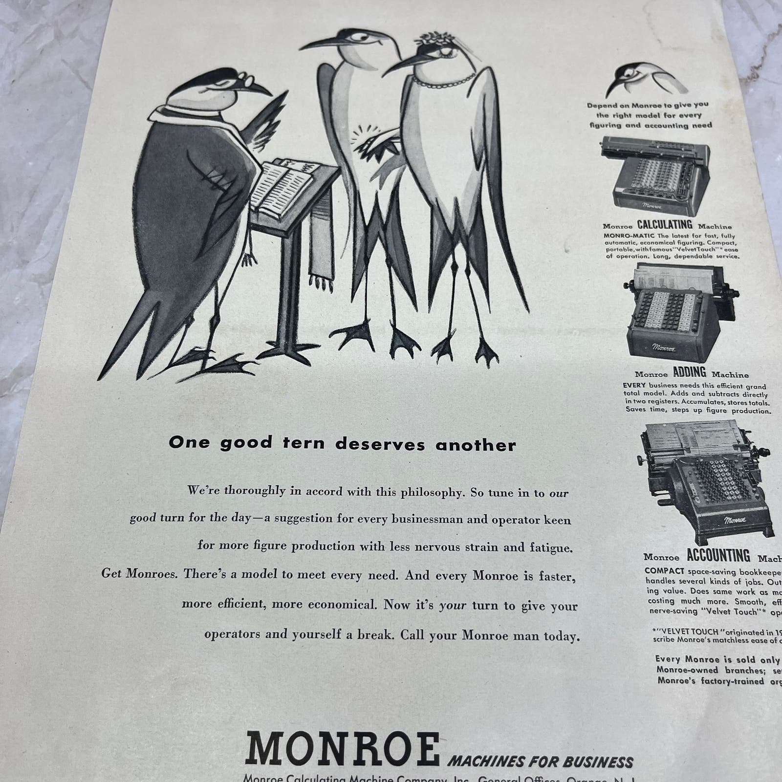 Monroe Calculating Machine Company Cartoon Penguins 1951 Magazine Ad FL6-10