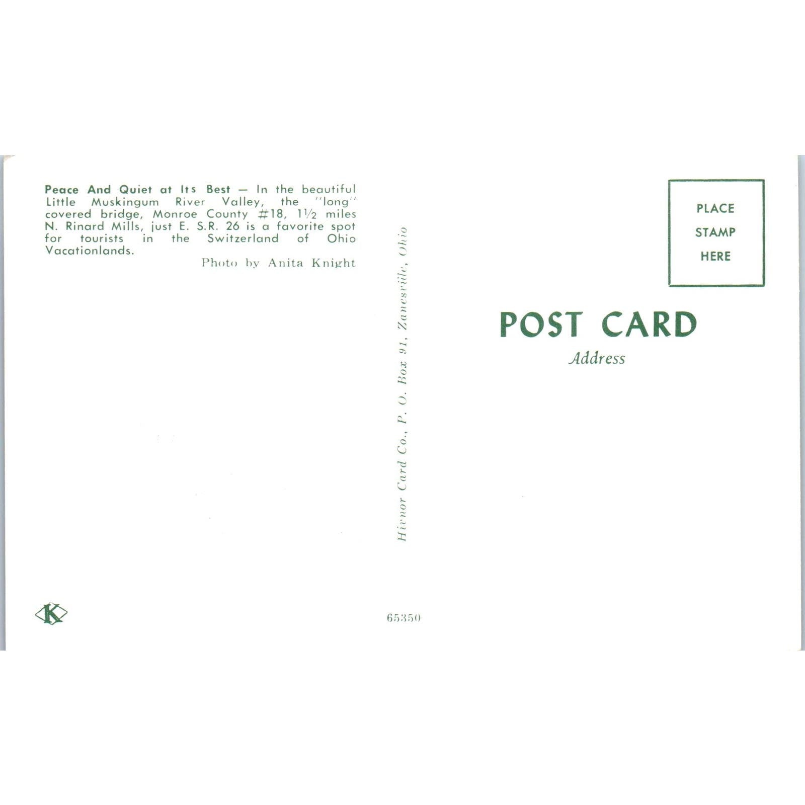 Monroe County #18 Little Muskingum River Ohio Covered Bridge Postcard PC6