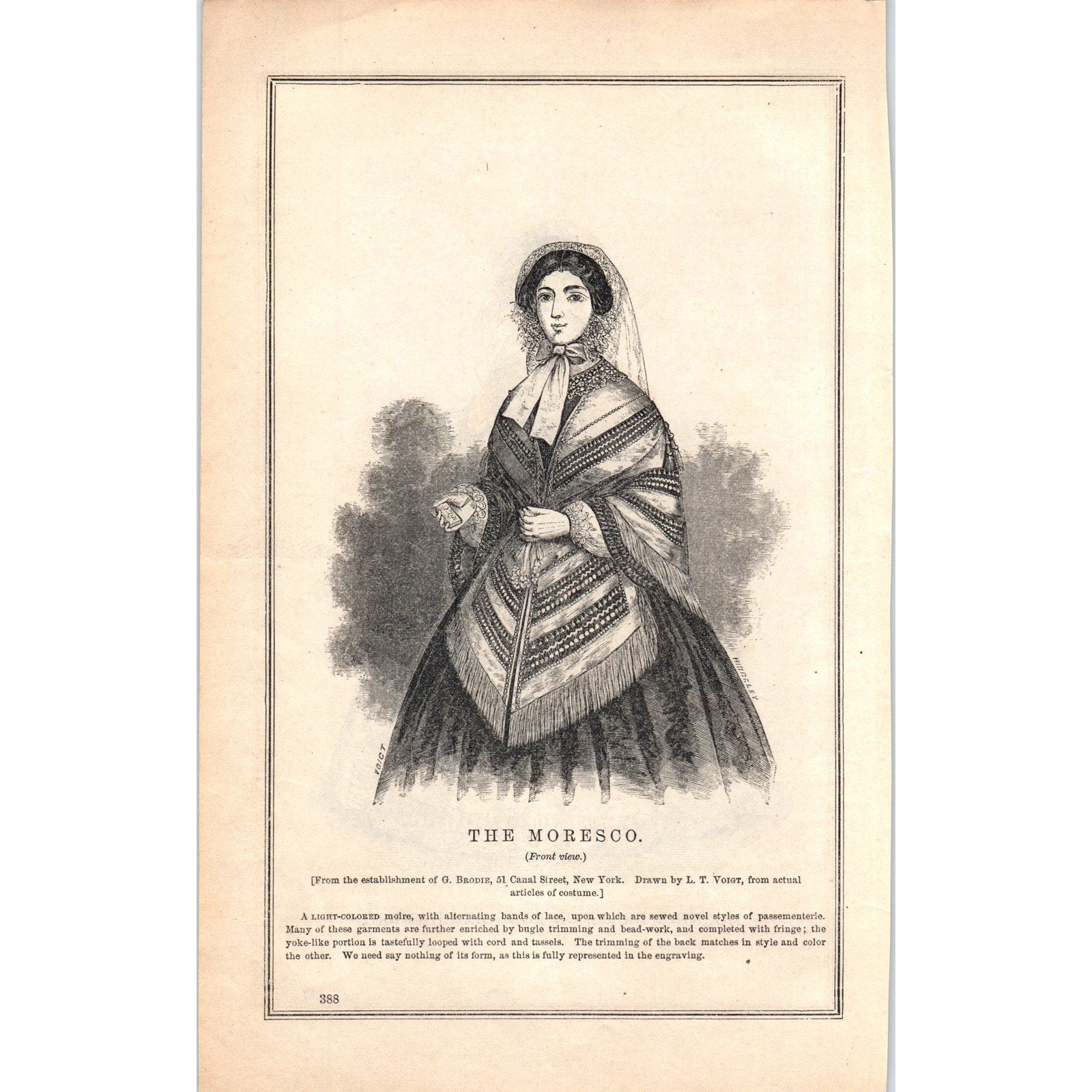 Original piece taken from the 1857 Godey's Lady's Book, may have small blemishes, tears, etc. from use. Please review pictures closely. Measures approx 6x9.5".