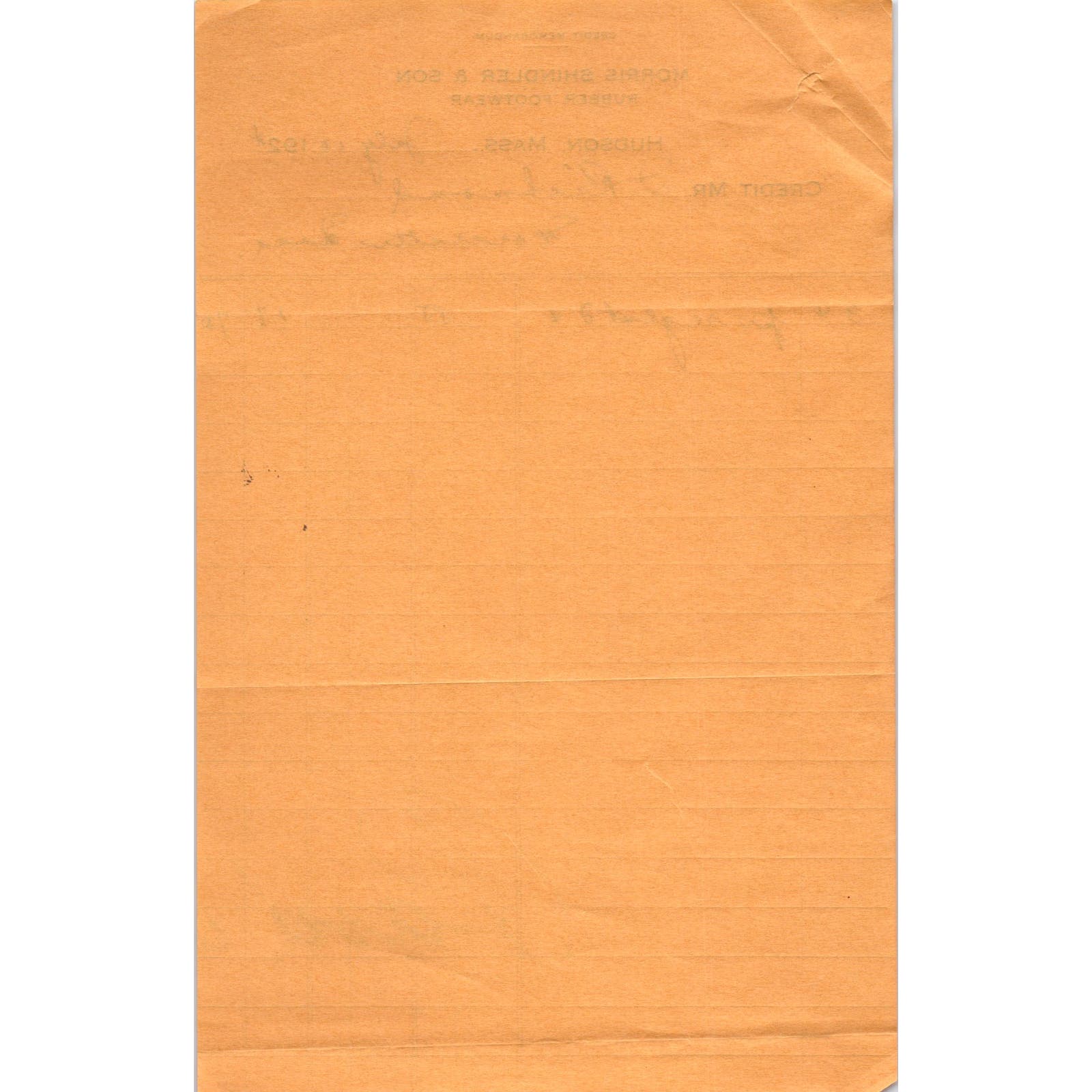 Morris Shindler & Son Rubber Footwear Hudson MA 1924 Original Billhead D8-LL