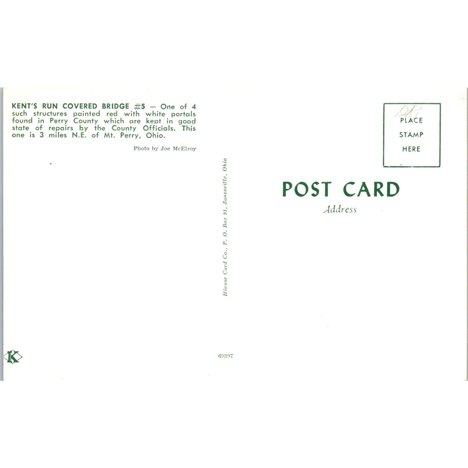 Mount Perry Ohio Kent's Run #5 Covered Bridge Postcard PC6