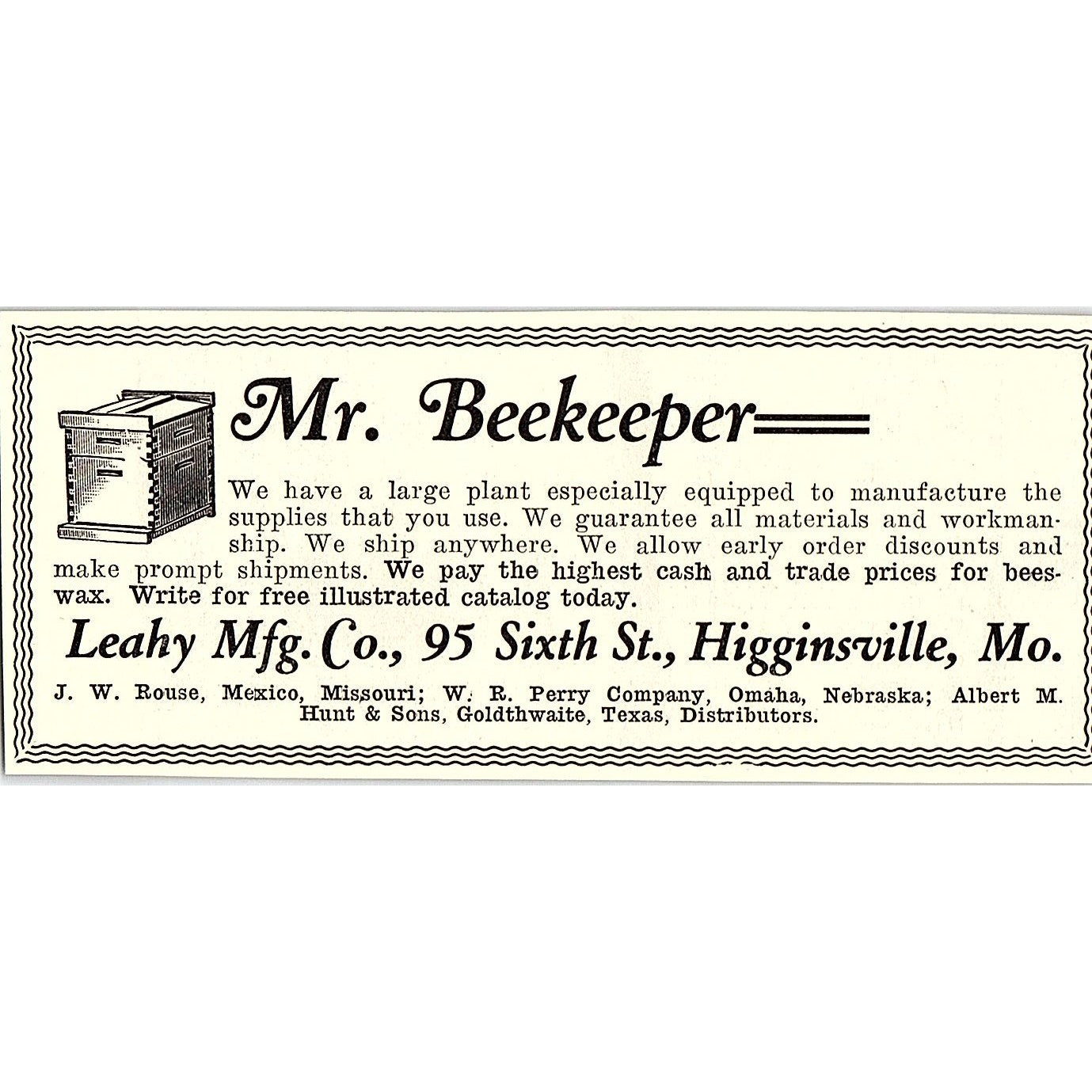 Mr. Beekeeper Leahy Mfg Co Higginsville MO JW Rouse WR Perry 1926 Ad AG3-M8