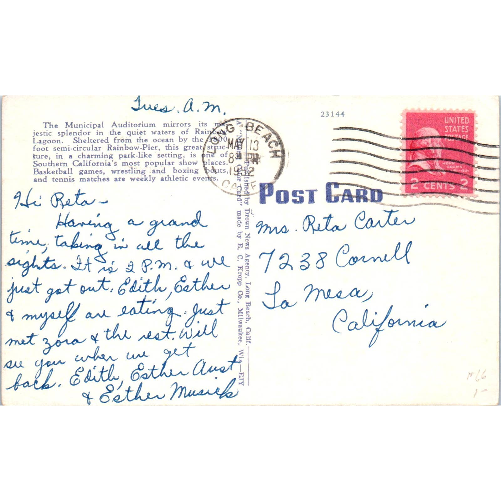 Municipal Auditorium Long Beach California 1952 Original Postcard TK1-21
