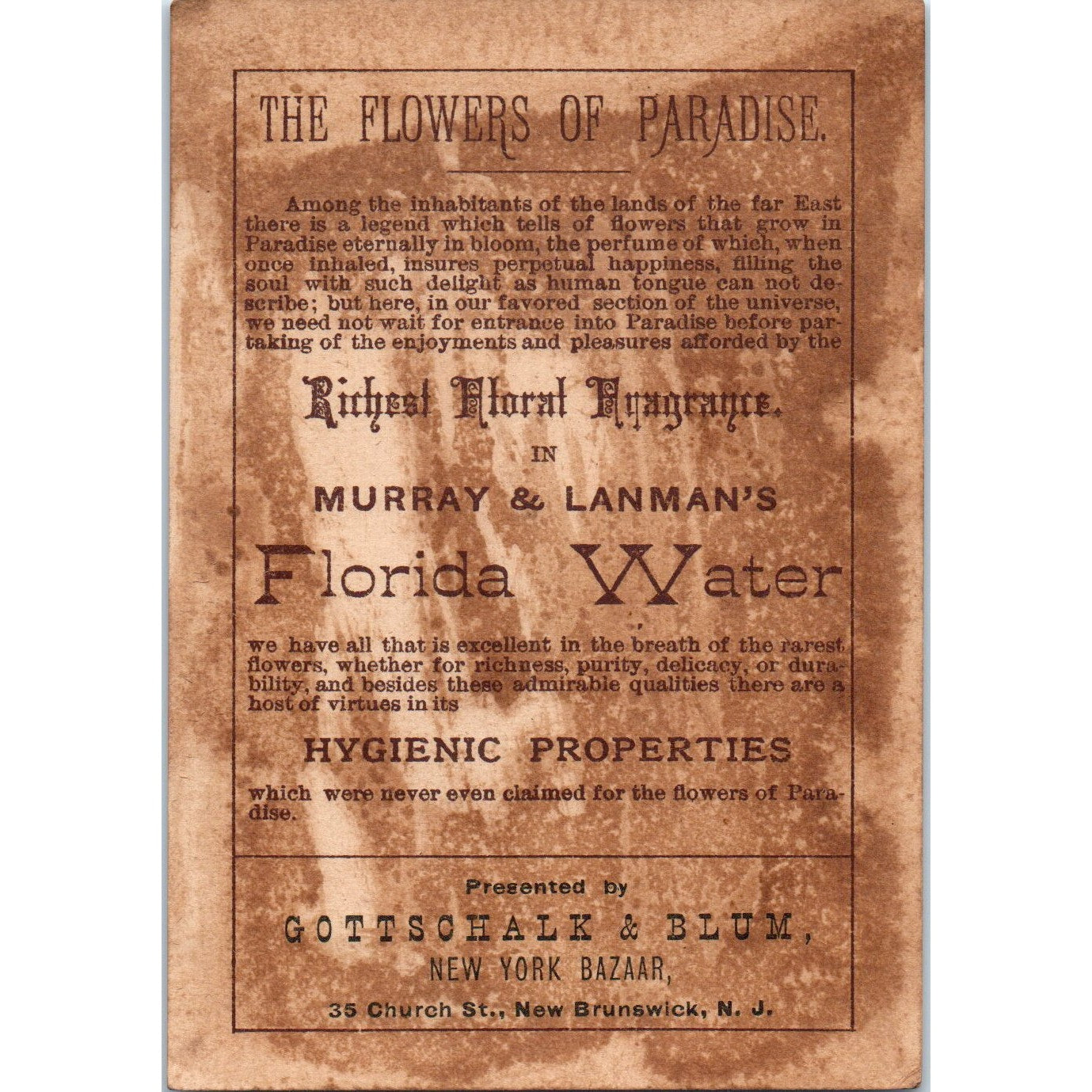Murray & Lanman Florida Water Gottschalk Blum New Brunswick NJ Trade Card AB6-2