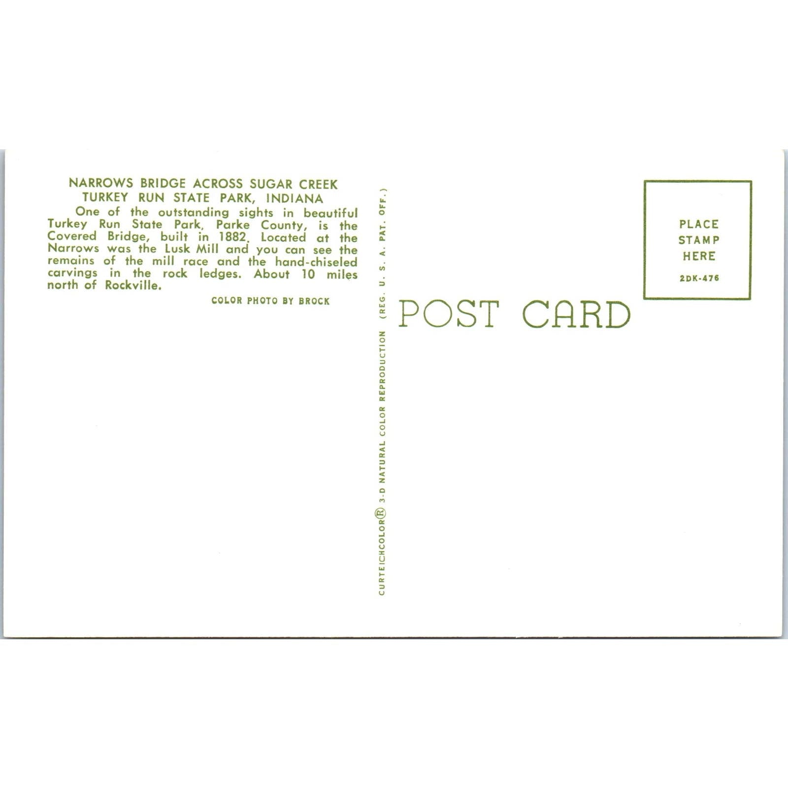 Narrows Bridge Sugar Creek Indiana Vintage Covered Bridge Postcard PD6