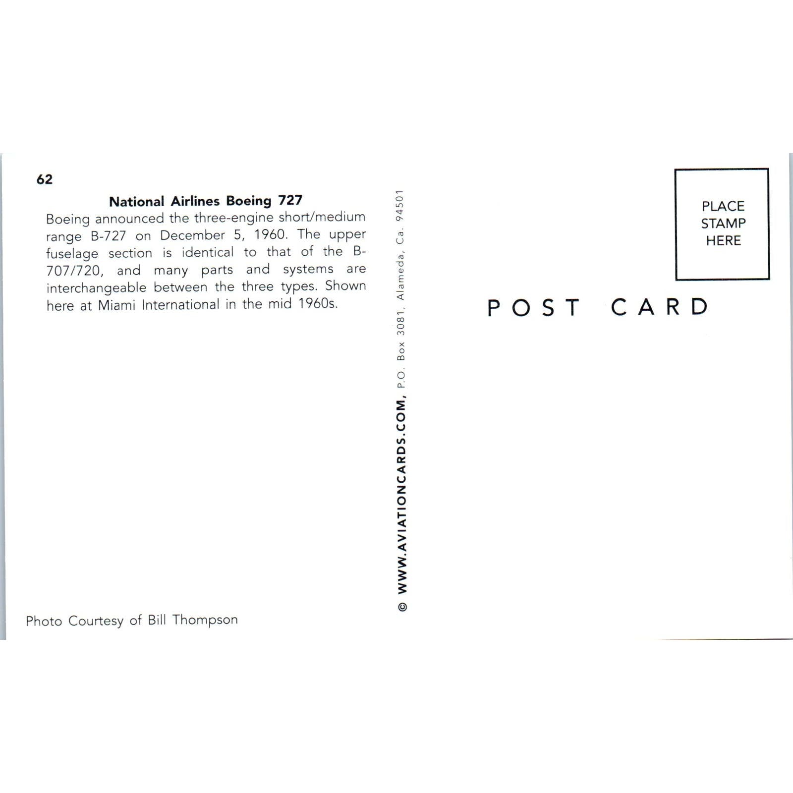 National Airlines Boeing 727 Vintage Postcard TG8-PC