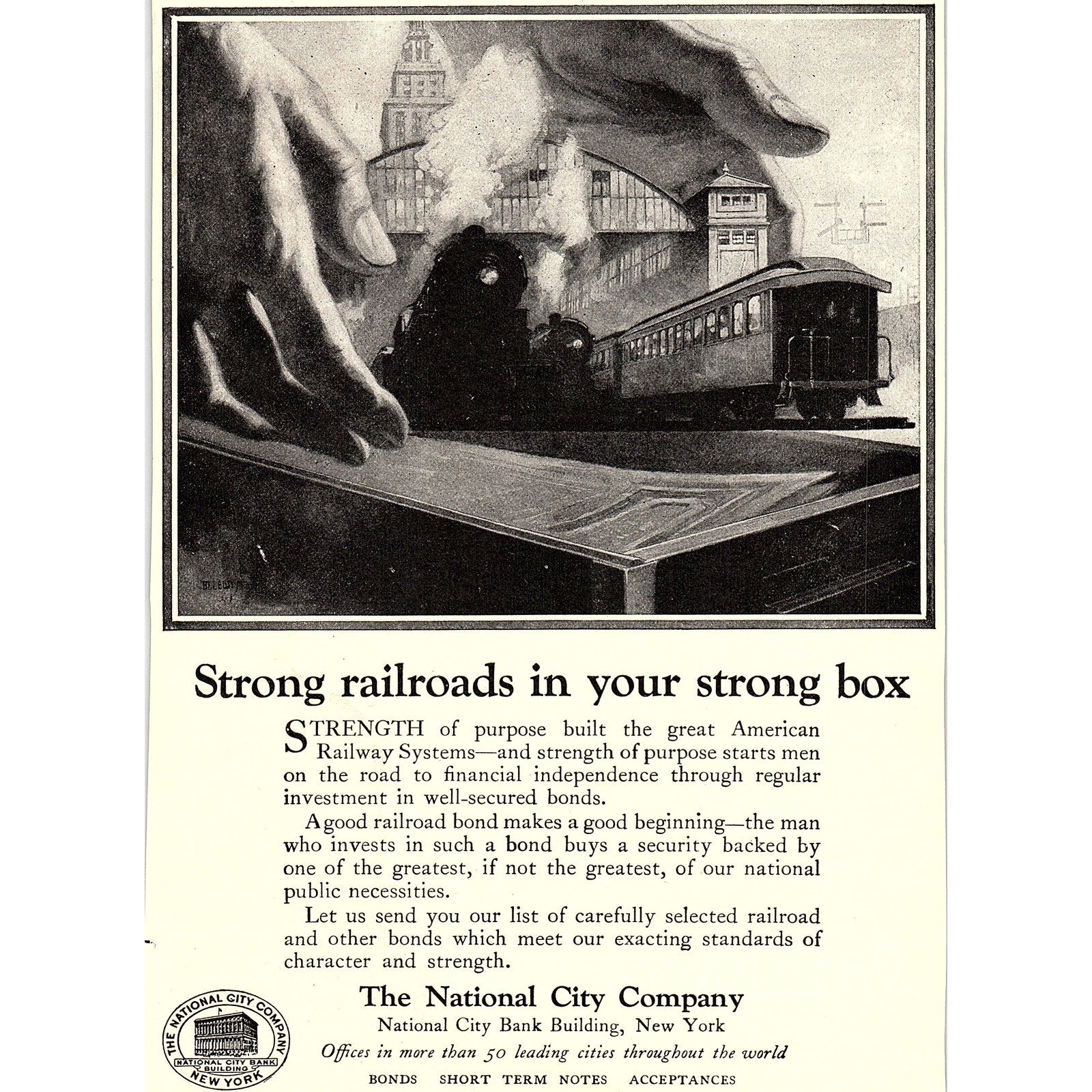National City Company Banking NY - Strong Railroads c1920 Ad AF8-10