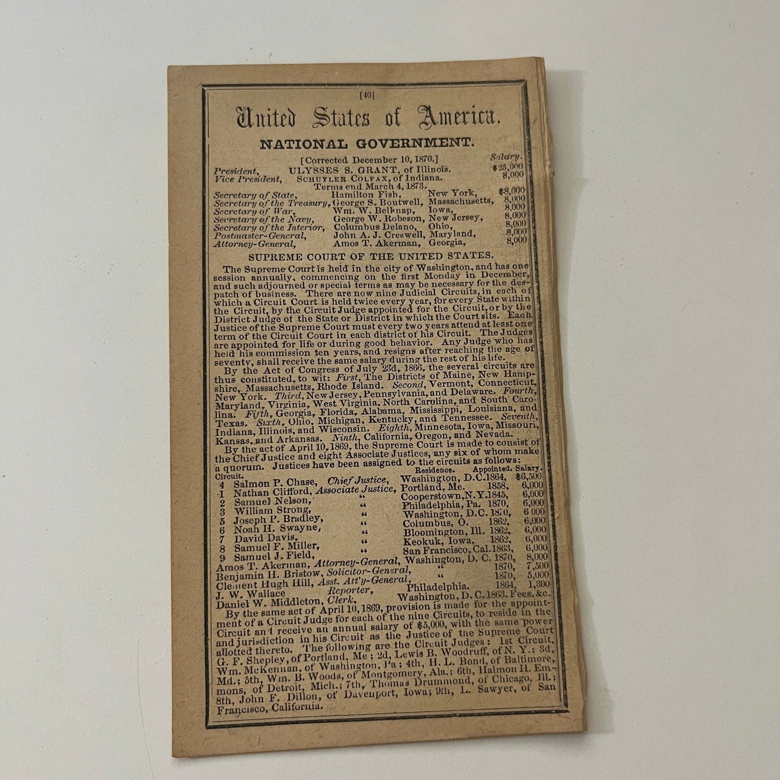 National Government of America Listings 1871 Boston Almanac Clipping SAI2-H3