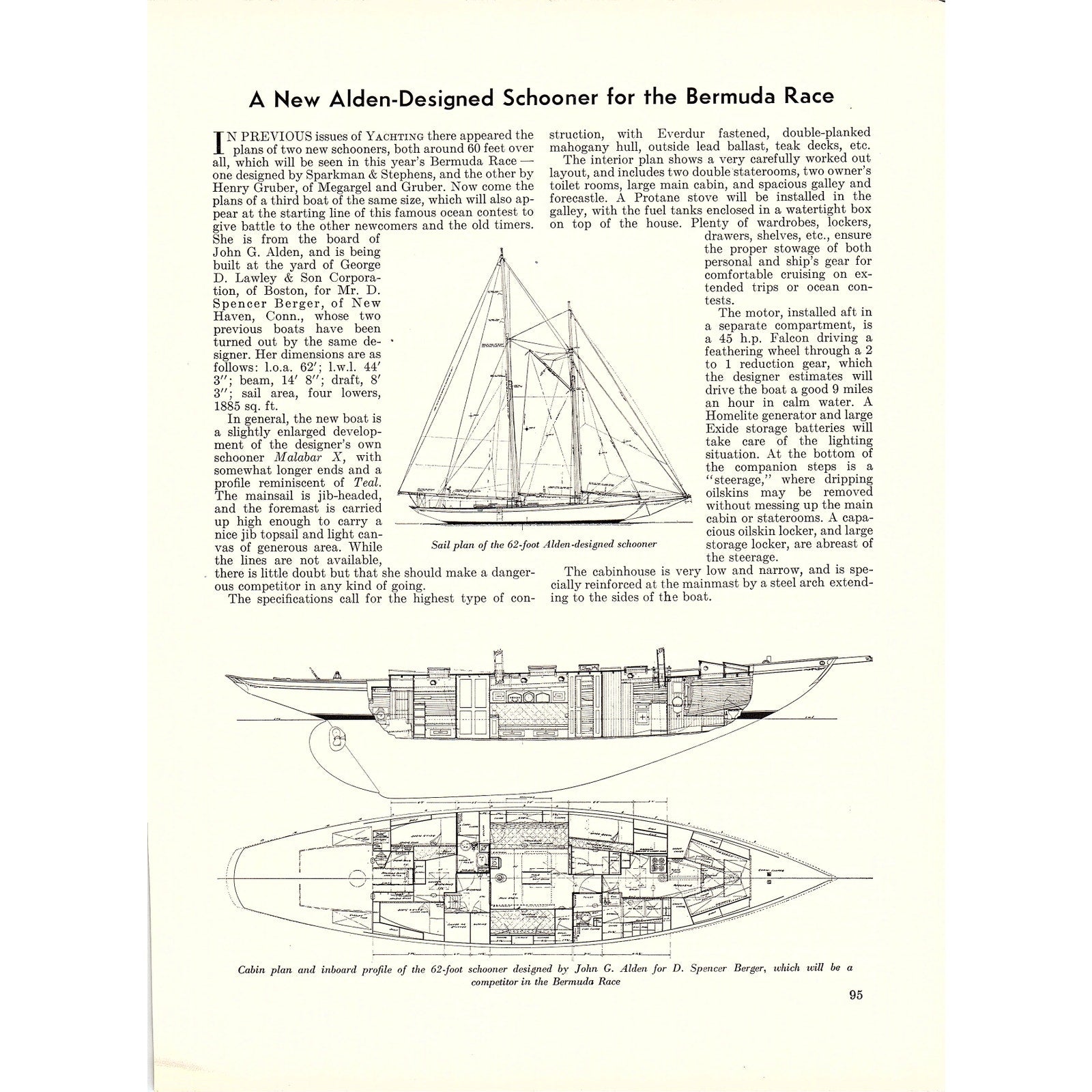 New Alden Designed Schooner for Bermuda Race Schematic 1932 Article V1-4