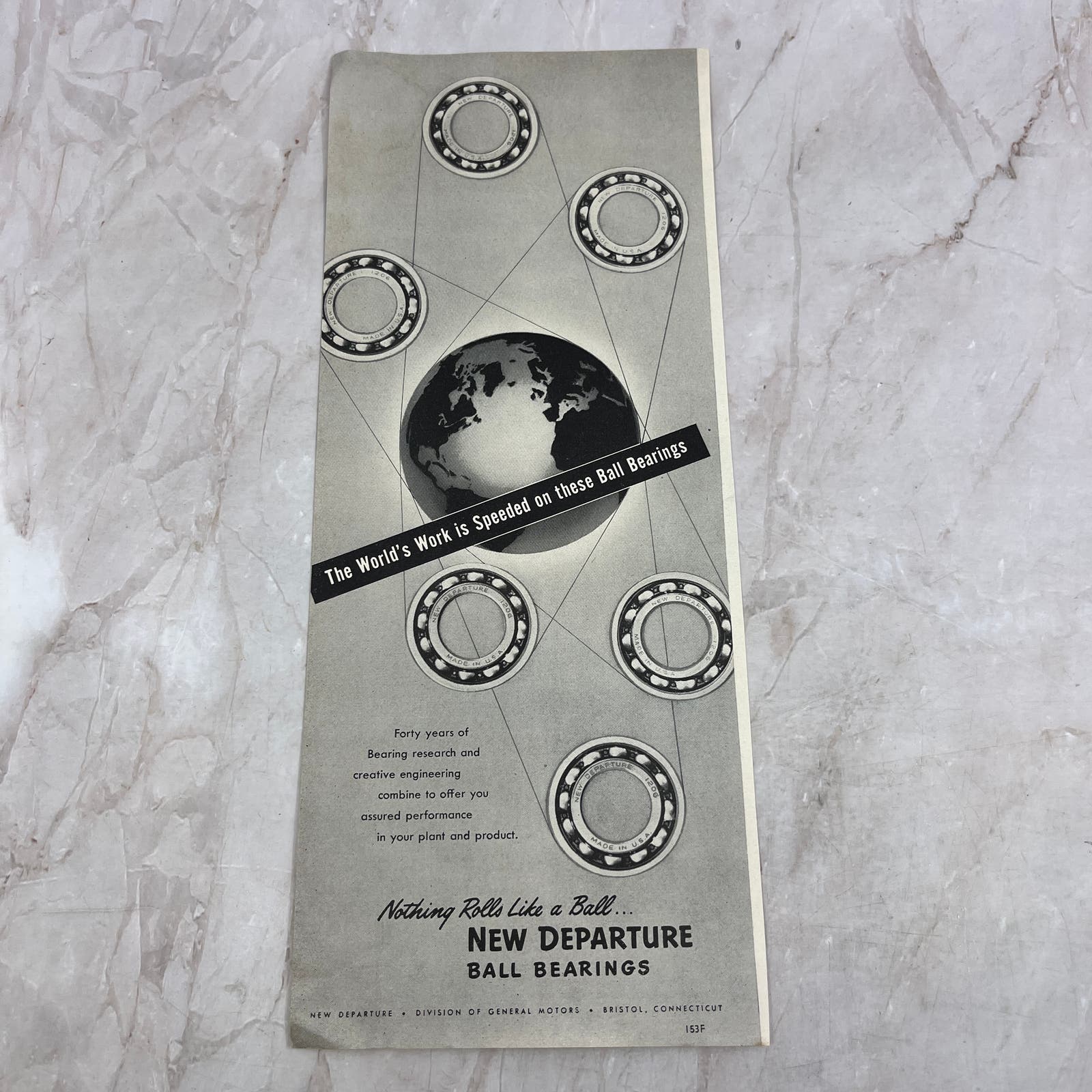 New Departure Ball Bearings General Motors Bristol CT 1951 Magazine Ad FL6-10