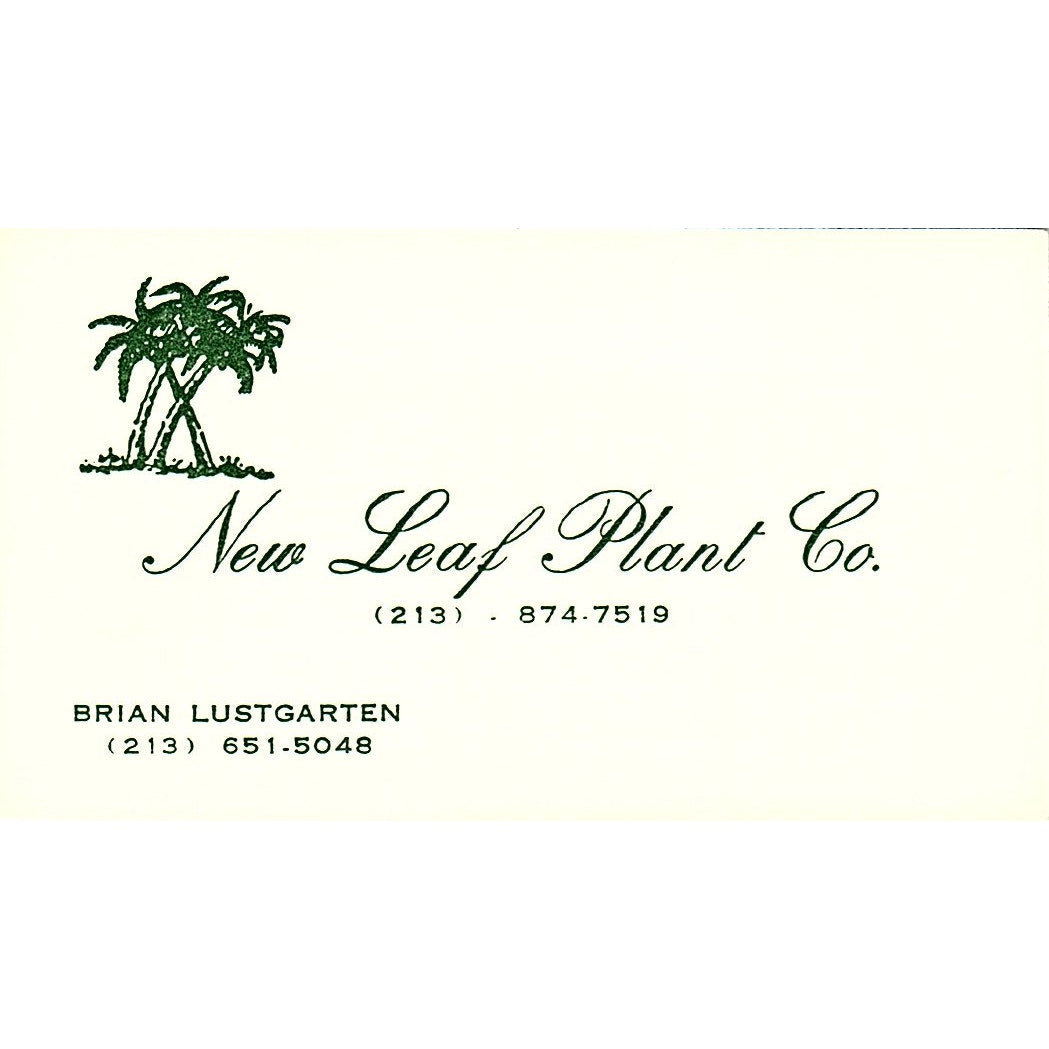 New Leaf Plant Co. Brian Lustgarden Los Angeles CA Vintage Business Card SF3-B8