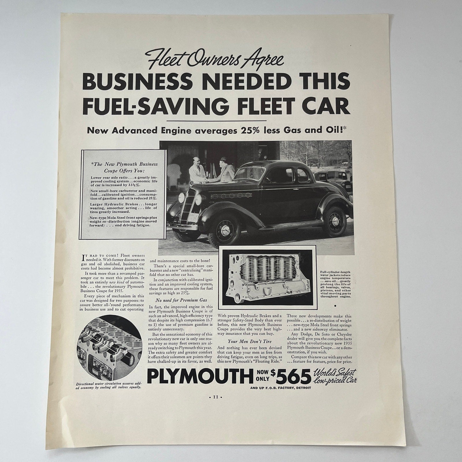 New Plymouth Business Coupe Fuel Saving Fleet Car Detroit 1935 Ad V1-5