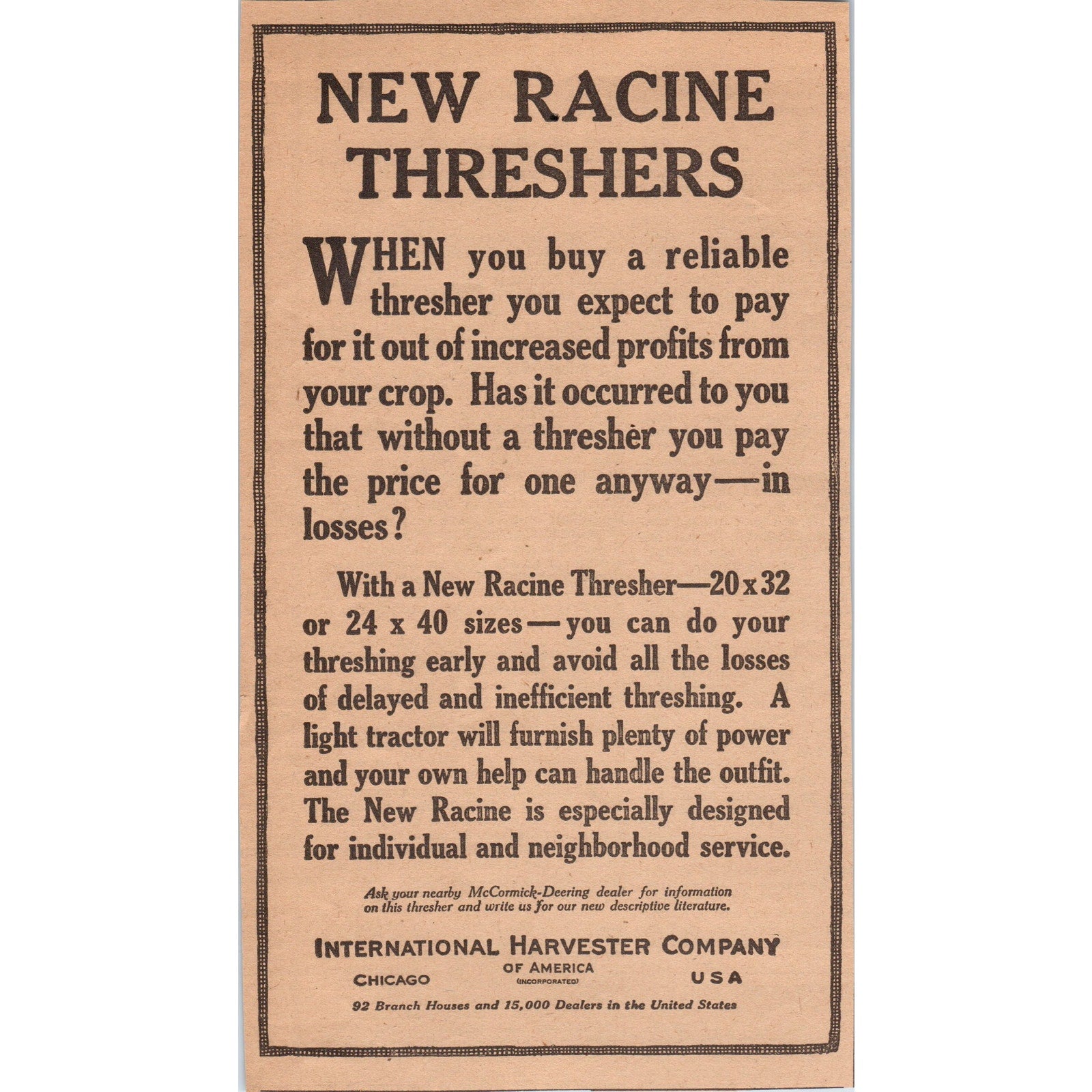 New Racine Threshers International Harvester Company IH 1922 Magazine Ad AF2-A5