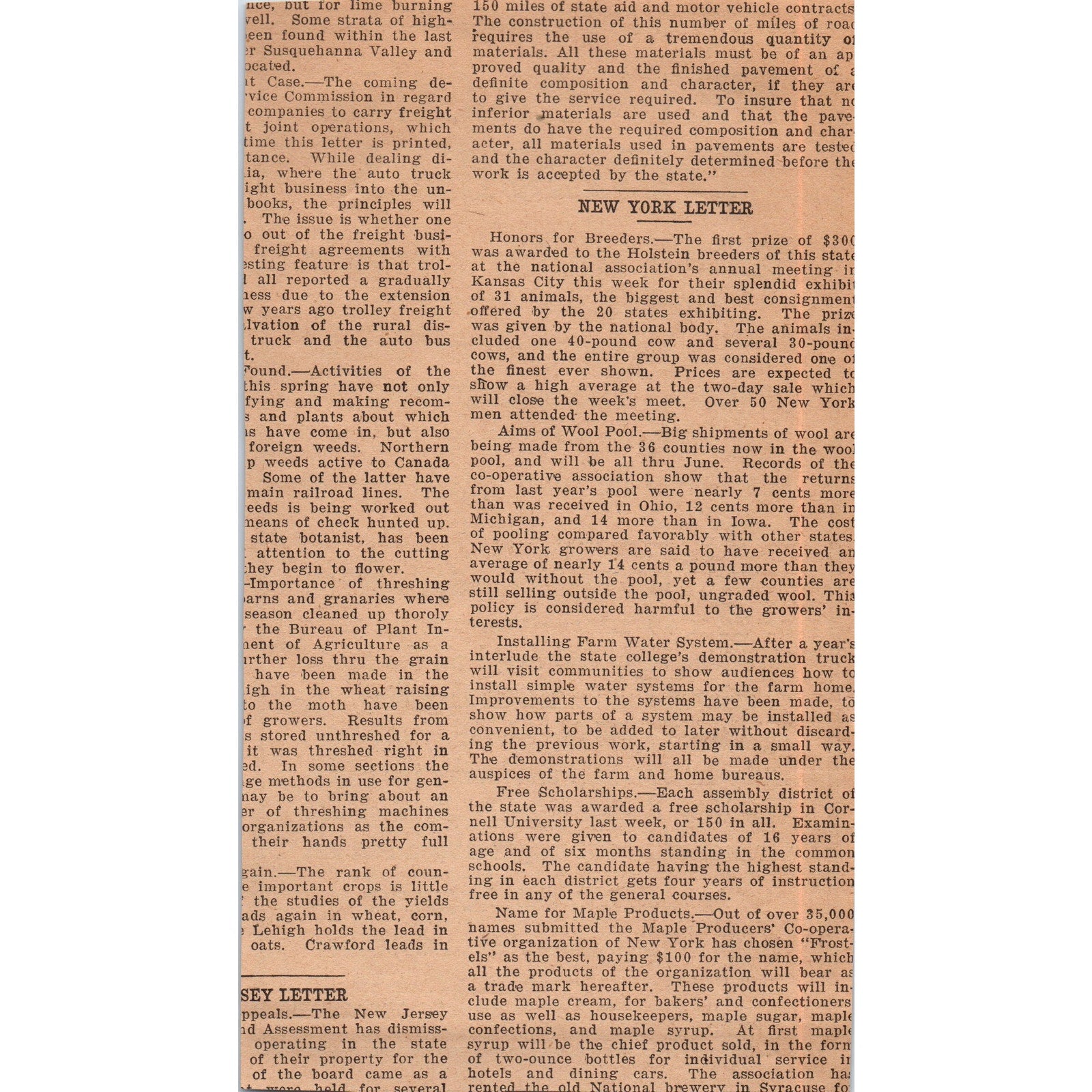 This is a SMALL piece, around 4" wide. If you need an exact measurement please ask. Original piece pulled from the Pennsylvania Farmer June 17, 1922. There may be some light staining, tears, and/or other signs of wear and tear. See pics for condition.