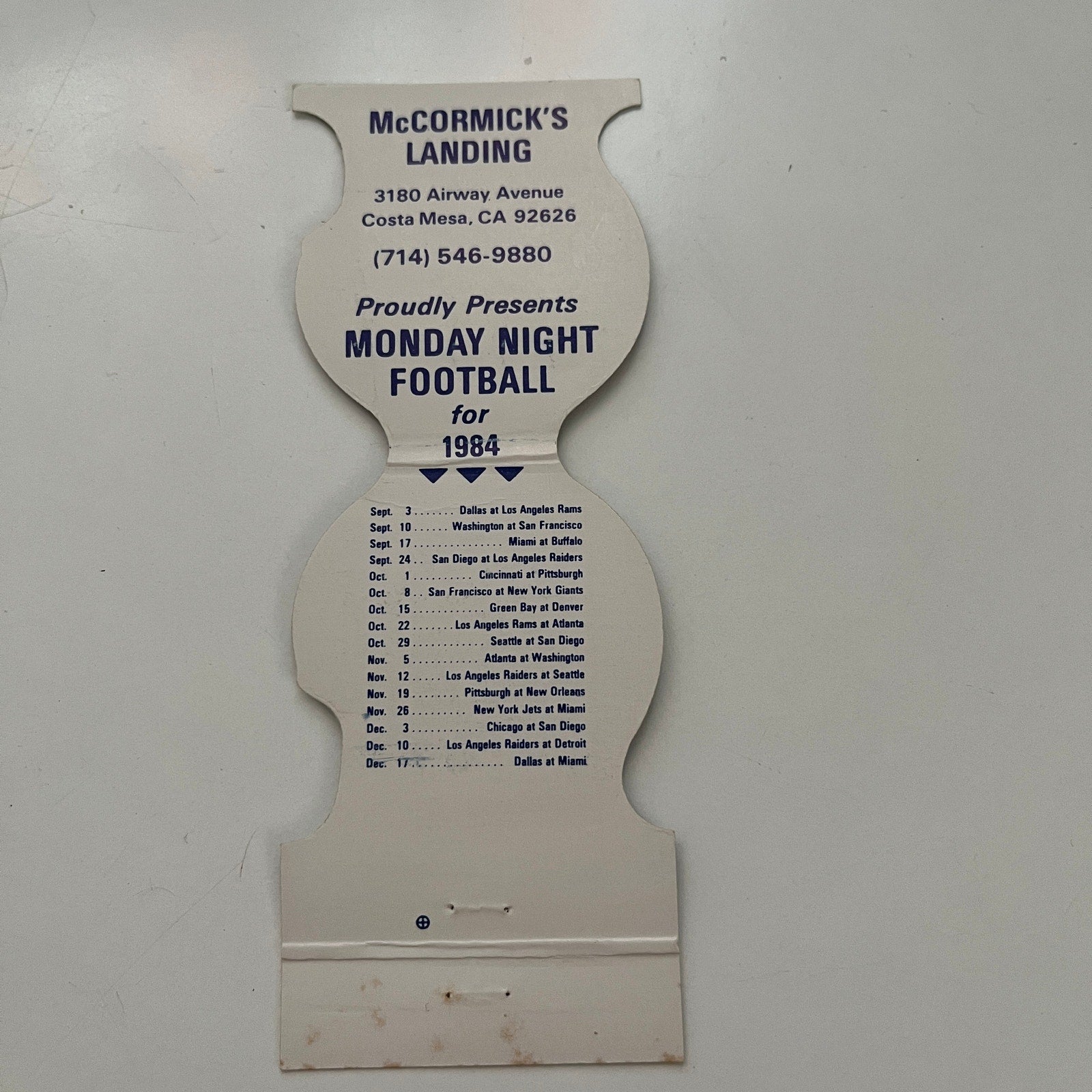 NFL Monday Night Football 1984 Schedule McCormick's Landing Costa Mesa CA Vintage Matchbook Cover SC5-MB1