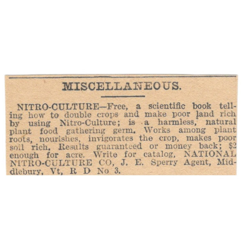 Nitro Culture Co J.E. Sperry Middlebury VT 1905 Magazine Ad AF1-NES3