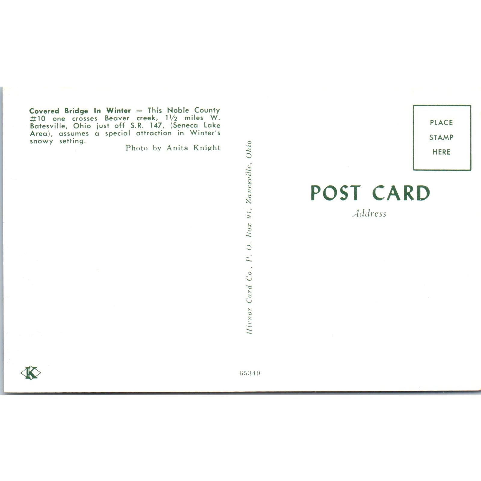 Noble County #10 Beaver Creek Batesville Ohio Covered Bridge Postcard PC2