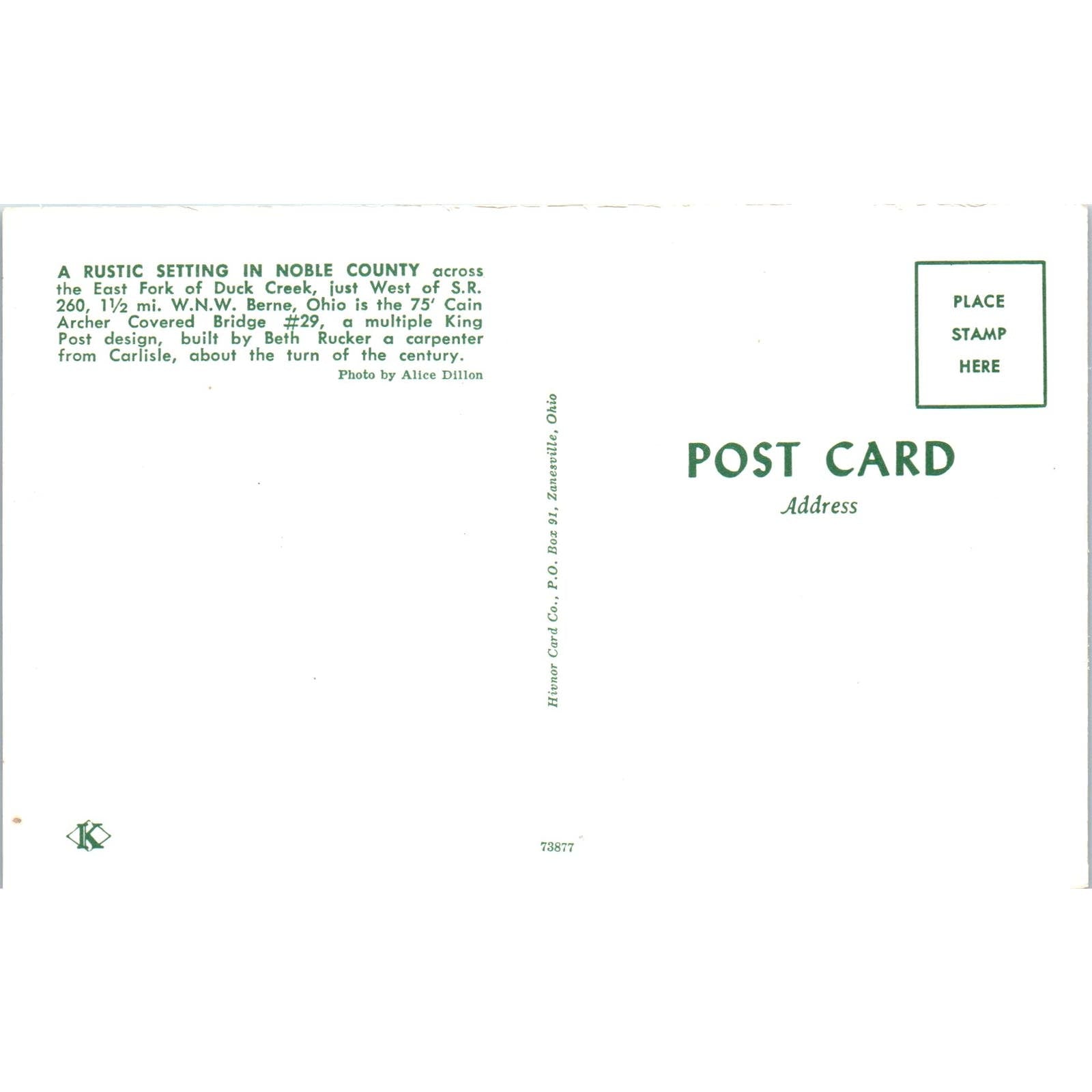 Noble County Duck Creek Berne OH #29 Covered Bridge Postcard PB11