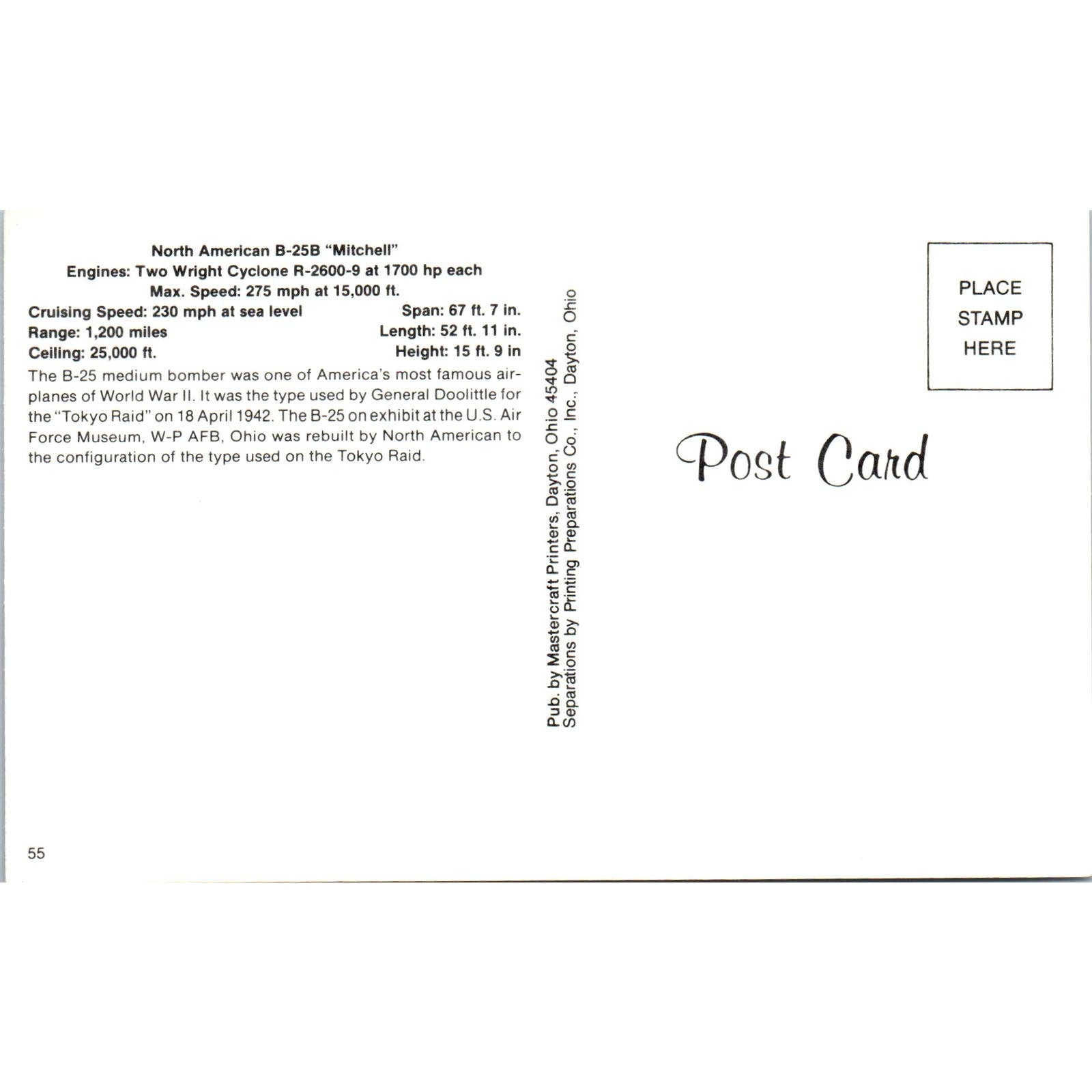 North American B-25B Mitchell Vintage Postcard TG8-PC