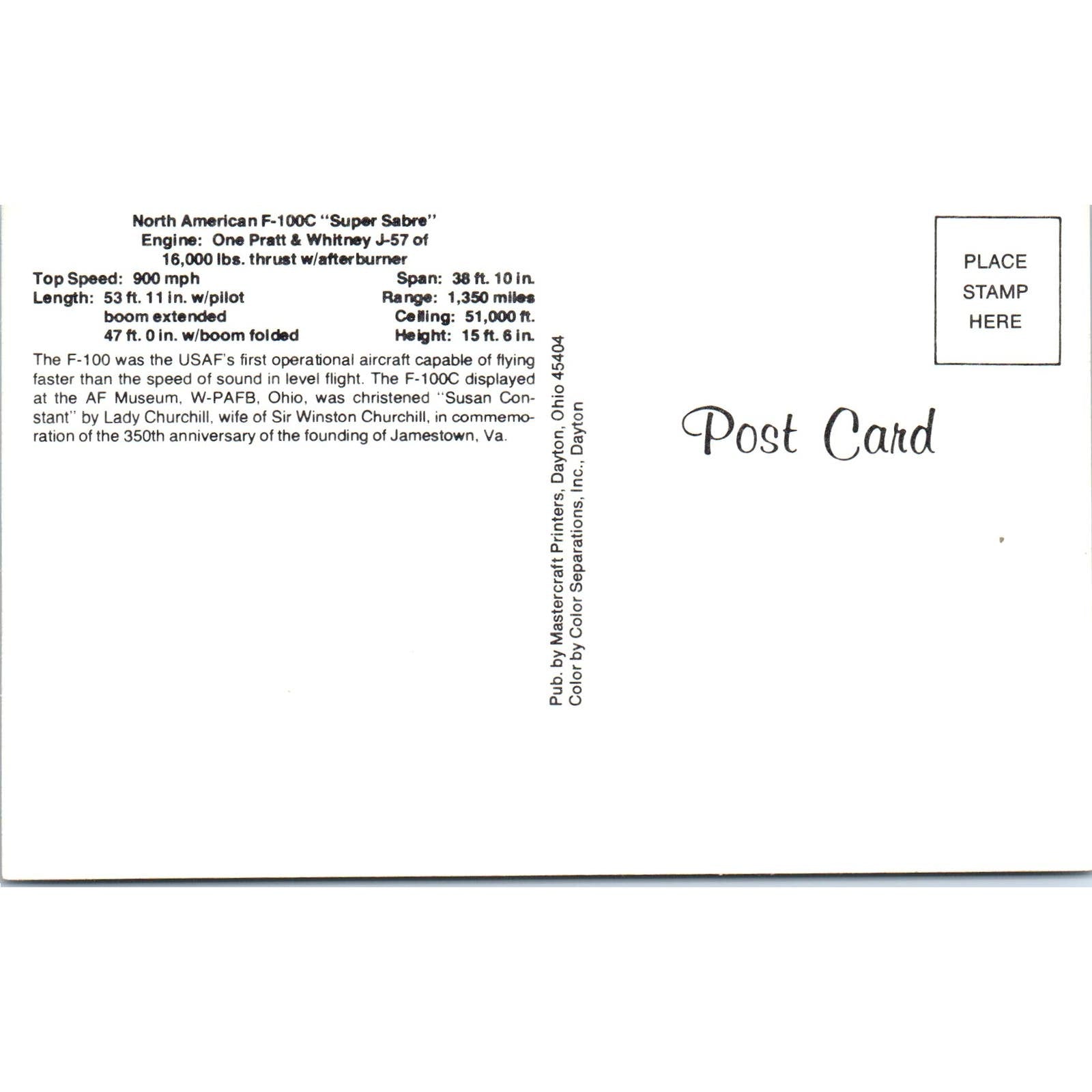 North American F-100C Super Sabre Vintage Postcard PC19