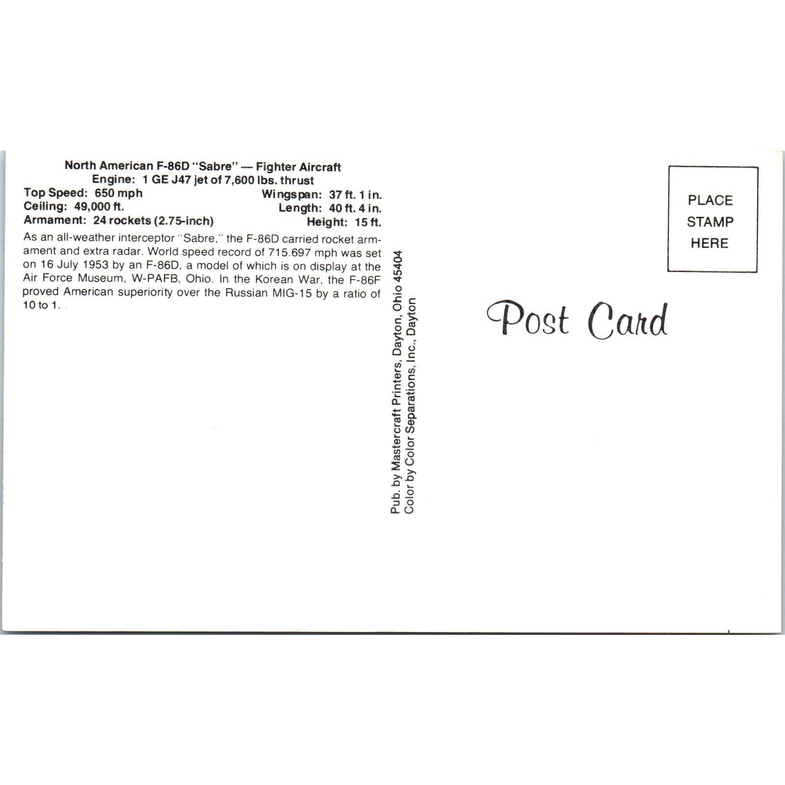 North American F-86D Sabre Fighter Aircraft Vintage Postcard TG8-PC