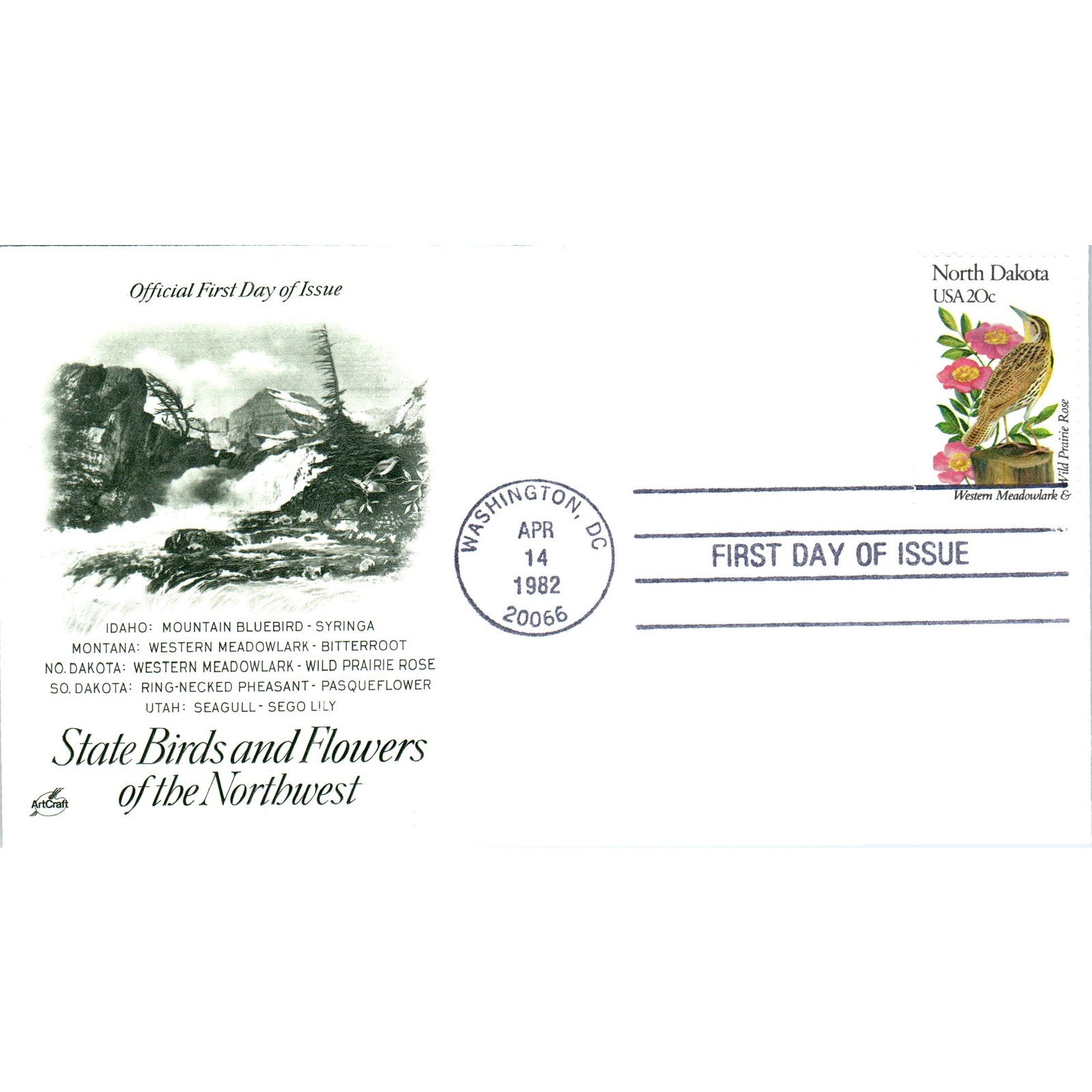 North Dakota 1982 State Birds & Flowers of The Northwest First Day Issue TJ5-PC1