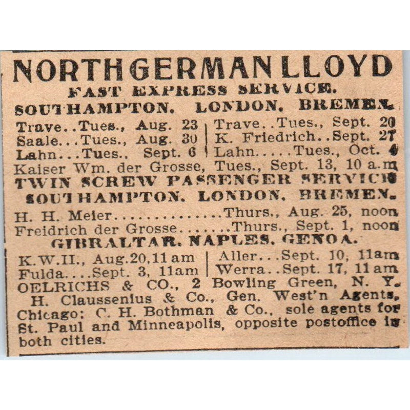 North German Lloyd Fast Express Service St. Paul 1898 Newspaper Ad AF2-Q4