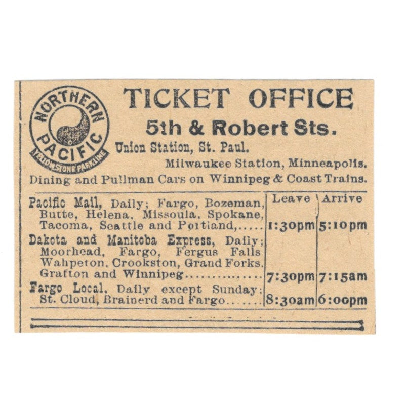 Northwestern Pacific Railroad 5th & Robert Ticket Office St. Paul 1898 Newspaper Ad AF2-S3