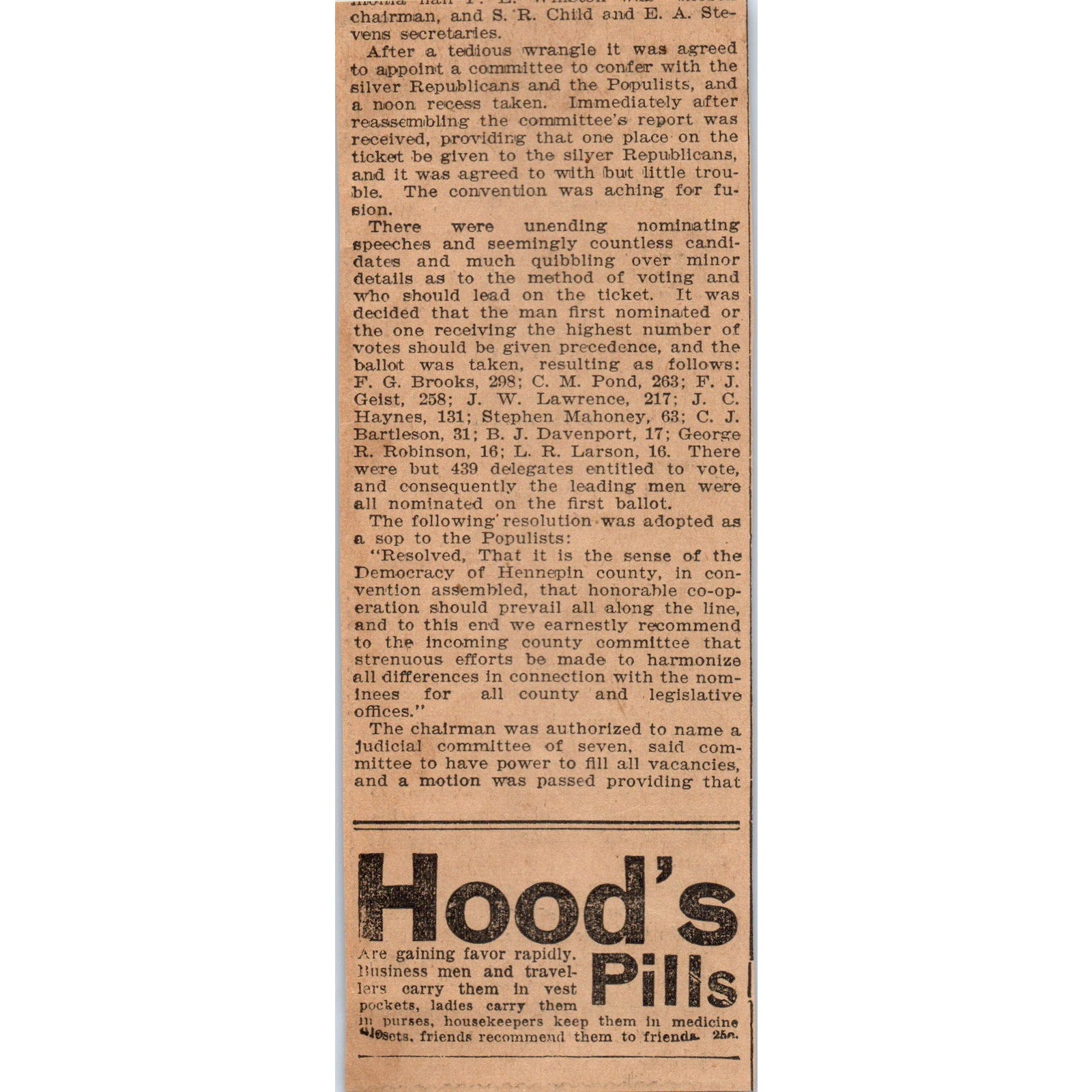 This is around 2" wide. If you need an exact measurement please ask. Original piece pulled from the St. Paul Pioneer Press Aug 17, 1898. There may be some light staining, tears, and/or other signs of wear and tear. See pics for condition.